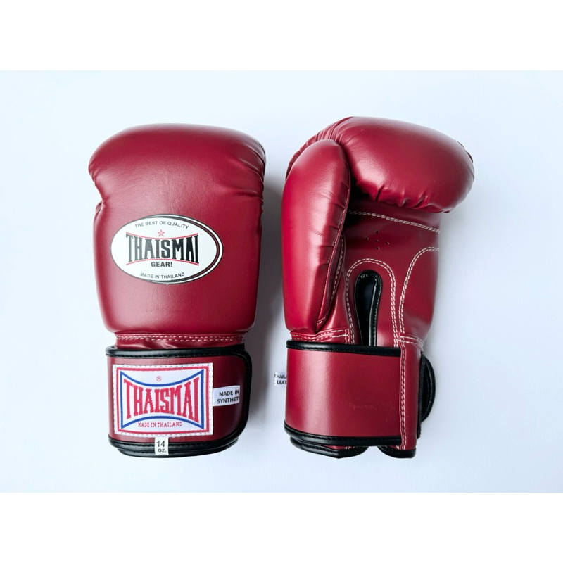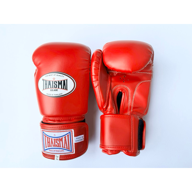 Thaismai Synthetic Leather PU Muay Thai Boxing Gloves Solid Color 14 oz Made in Thailand