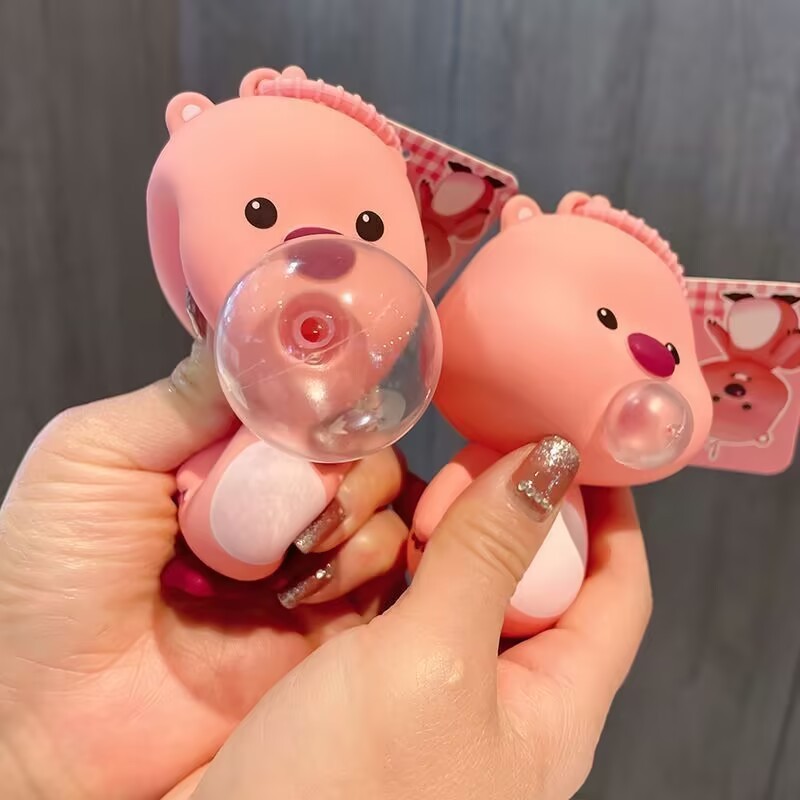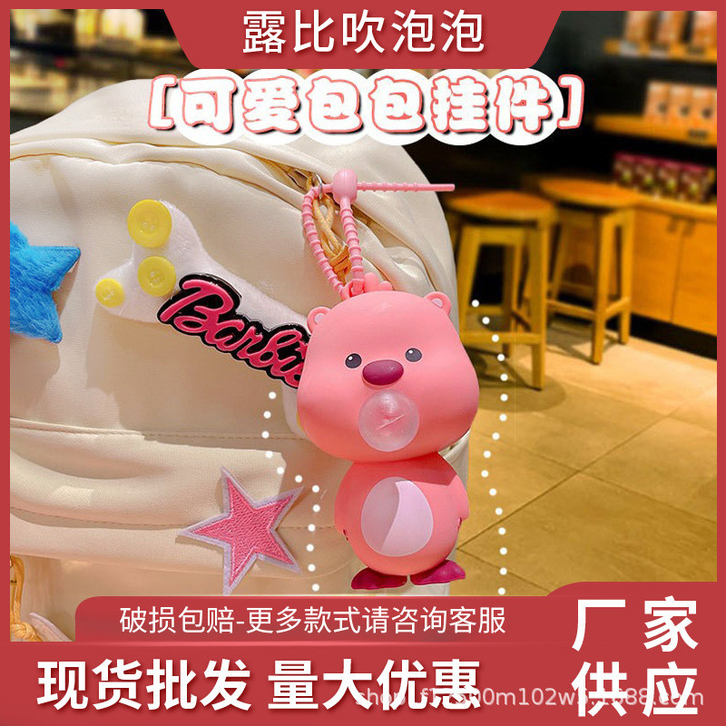 12cm Cute Loopy Blowing Bubbles Pinching Happy Unzip Key Chain Female Schoolbag Pendant Cartoon Creative Doll
