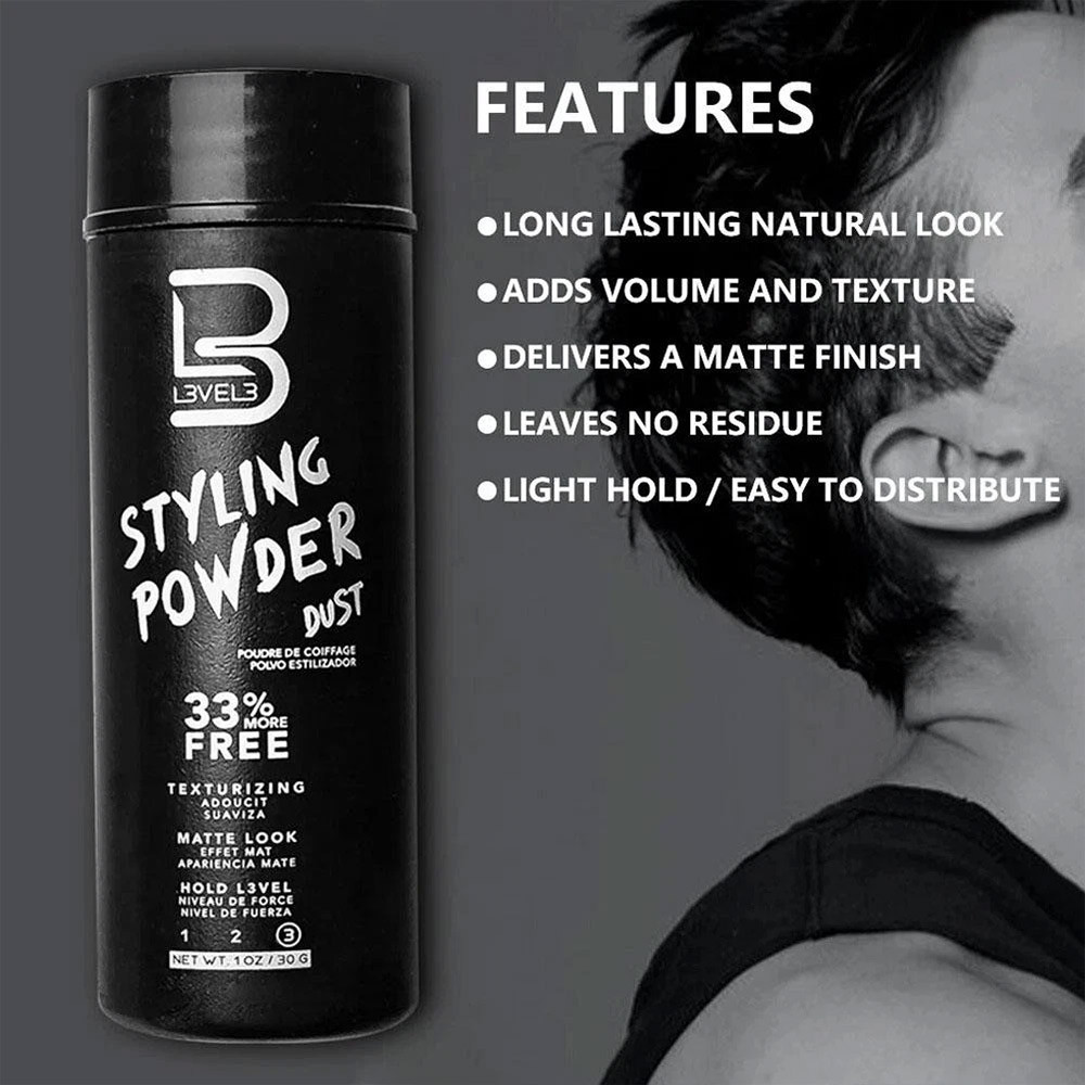 L3VEL3 hair styling powder with strong styling for men is easy to apply