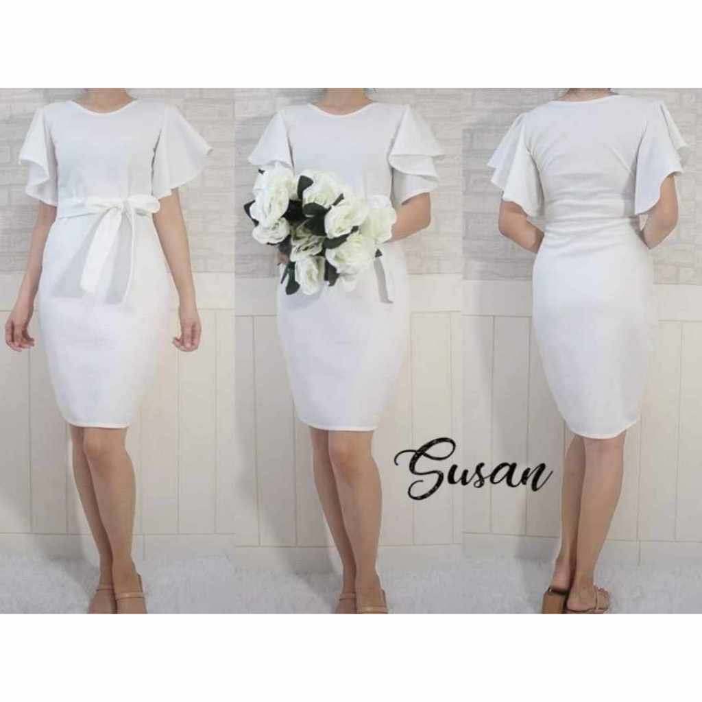 Susan Casual Plain White Color Graduation Civil Wedding Dress