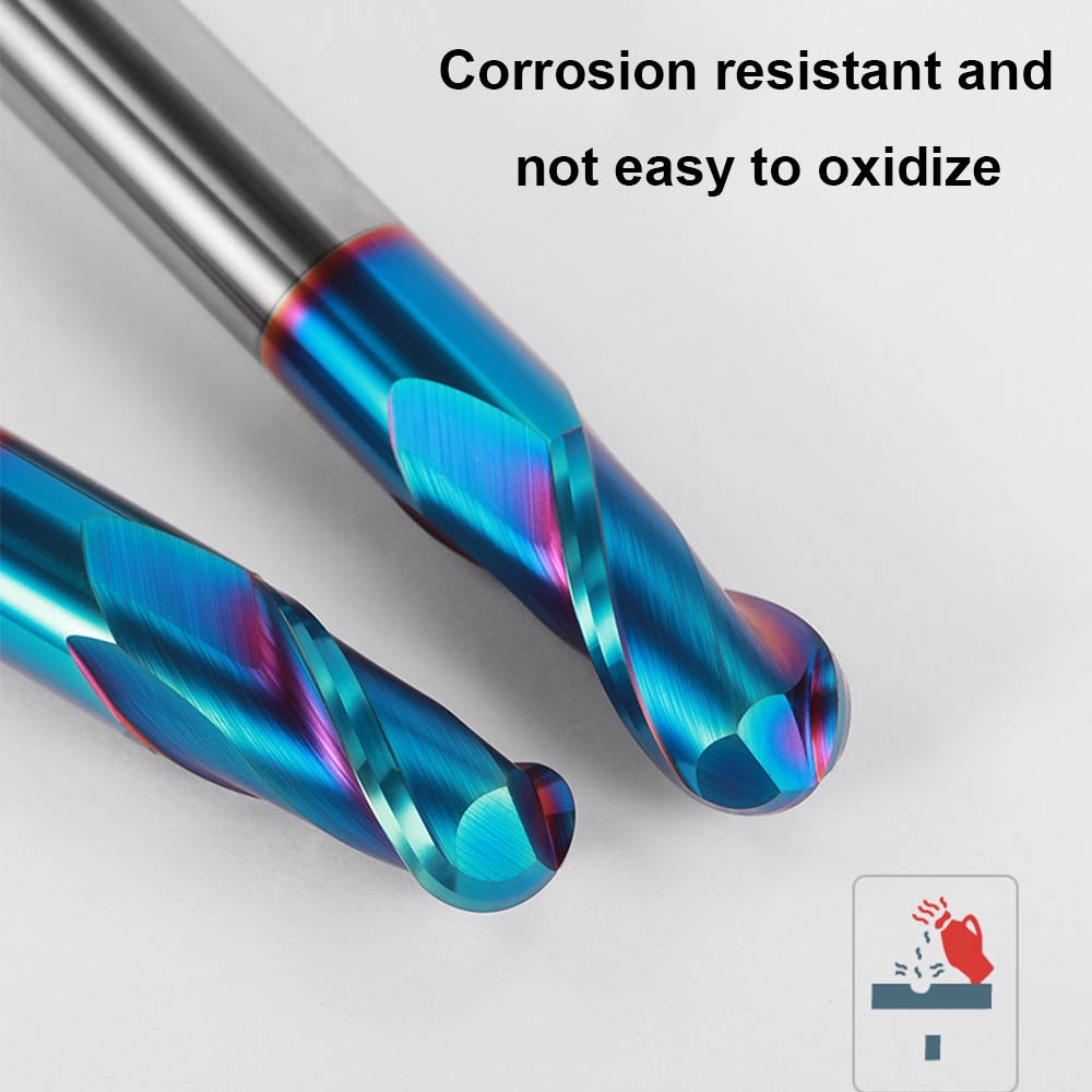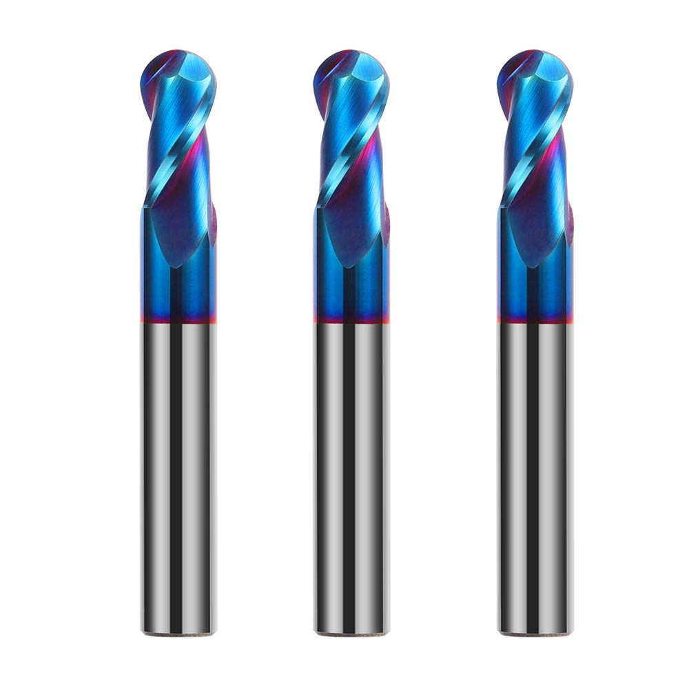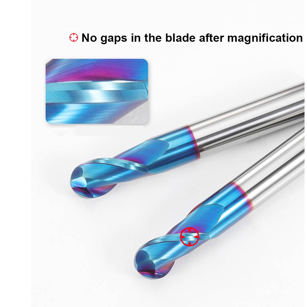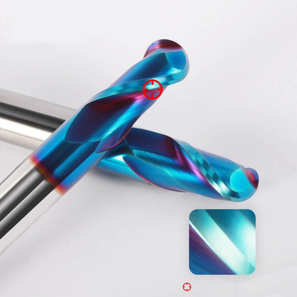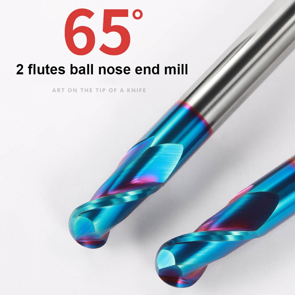 HRC65 Ball Nose End Mill CNC Router Bits Double Flute Spiral Milling Tool Tungsten Carbide Cutter with Nano Blue Coat