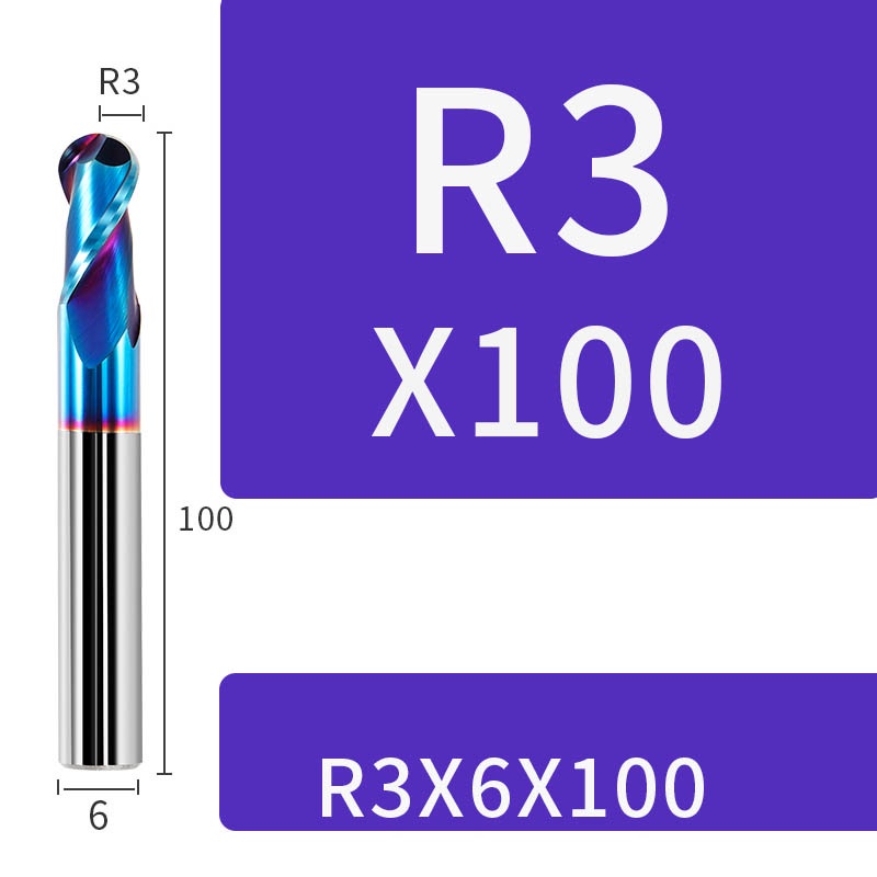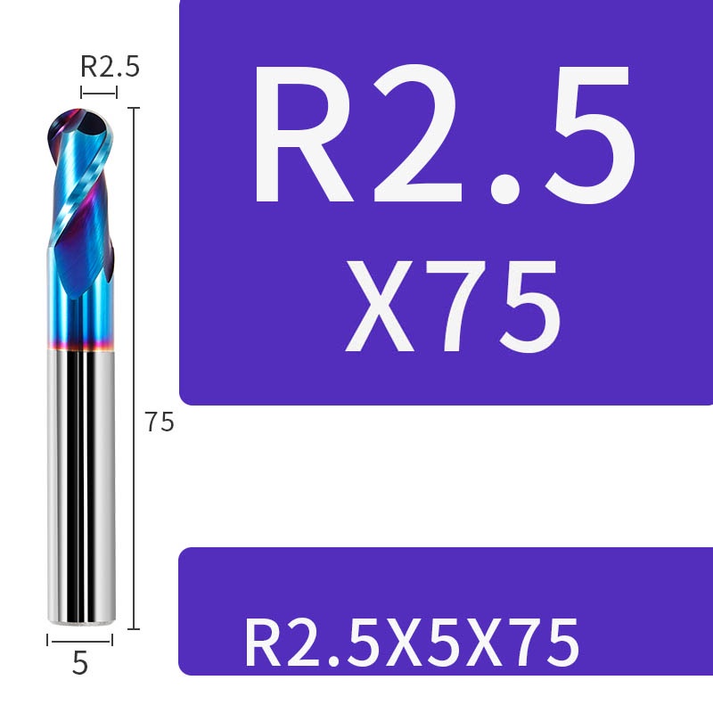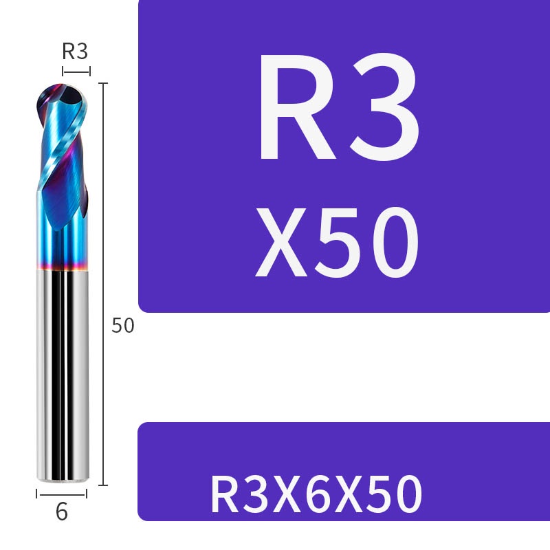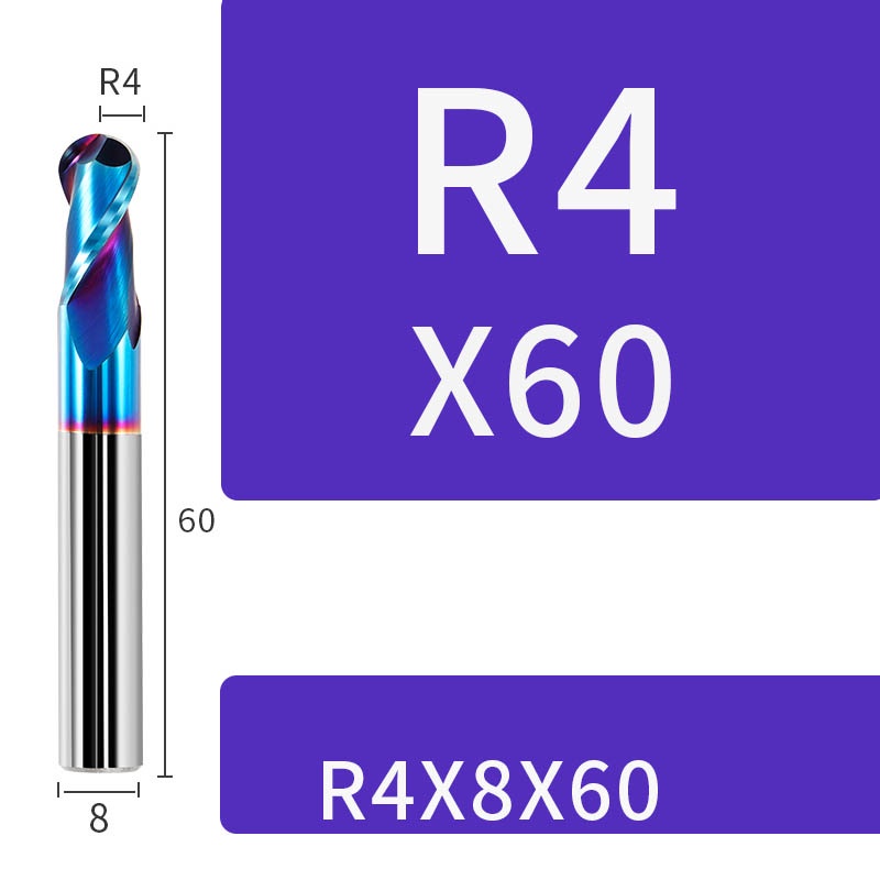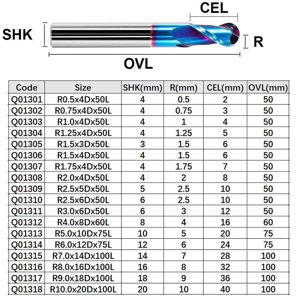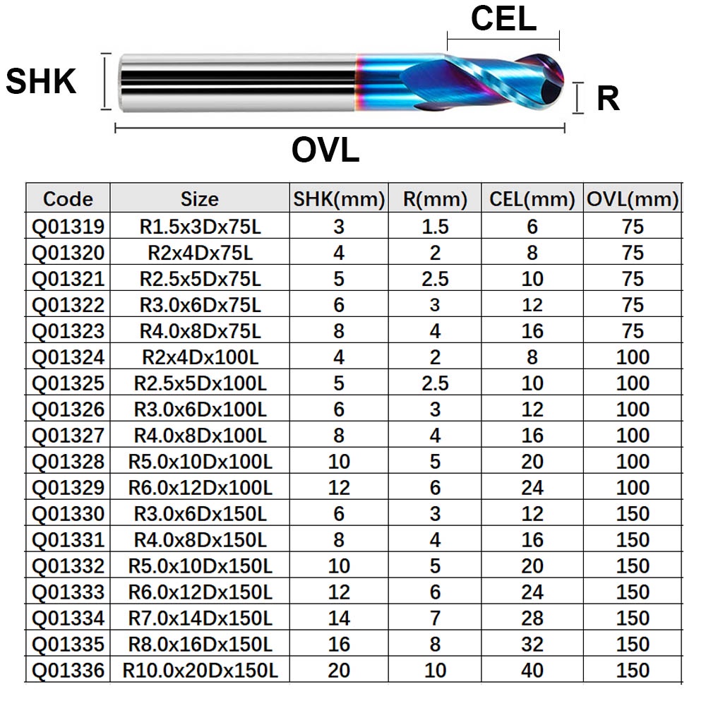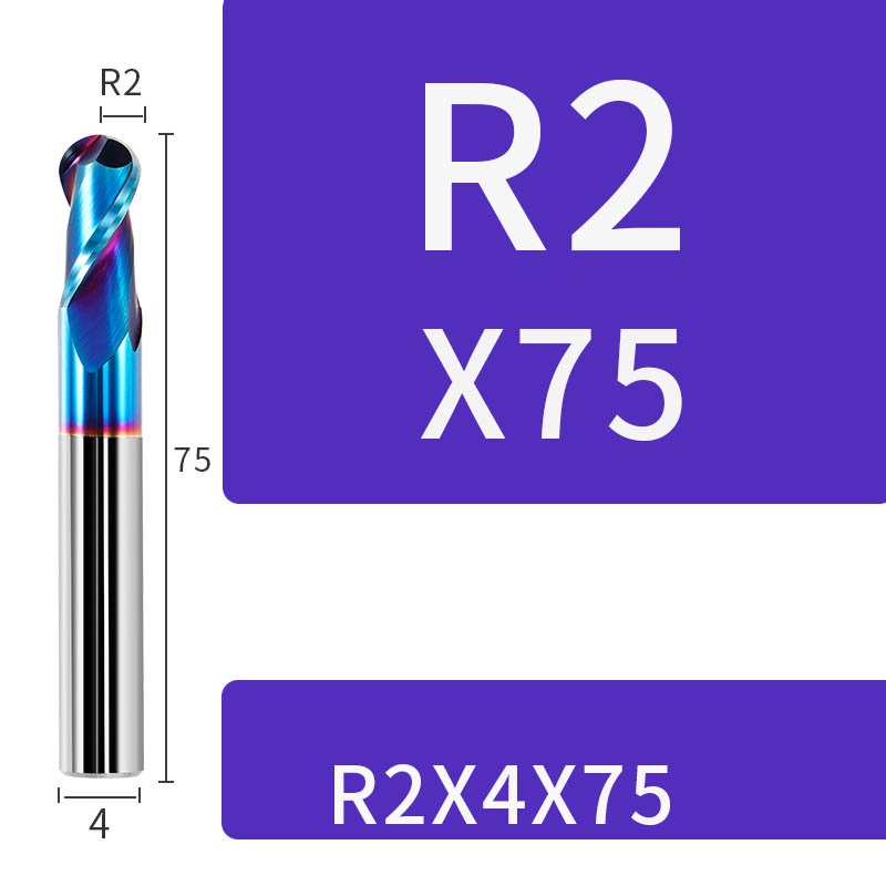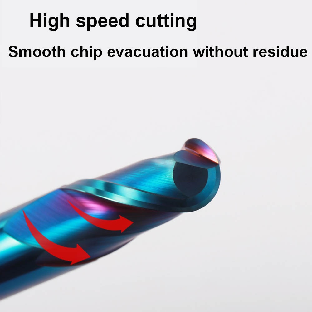 HRC65 Ball Nose End Mill CNC Router Bits Double Flute Spiral Milling Tool Tungsten Carbide Cutter with Nano Blue Coat