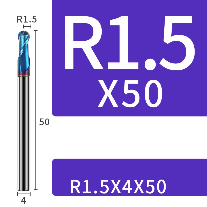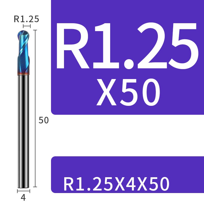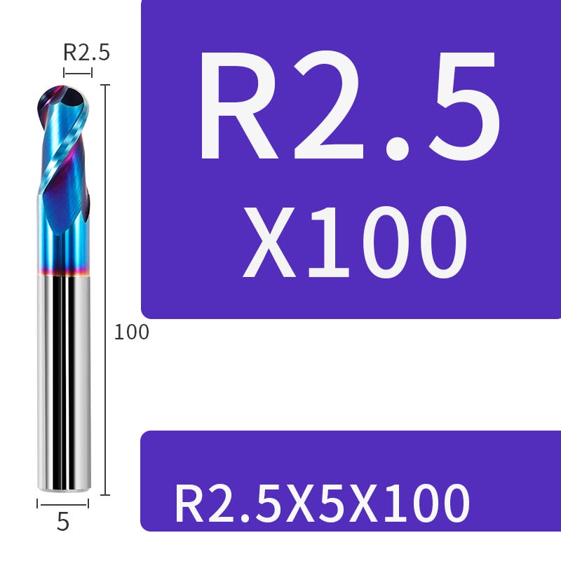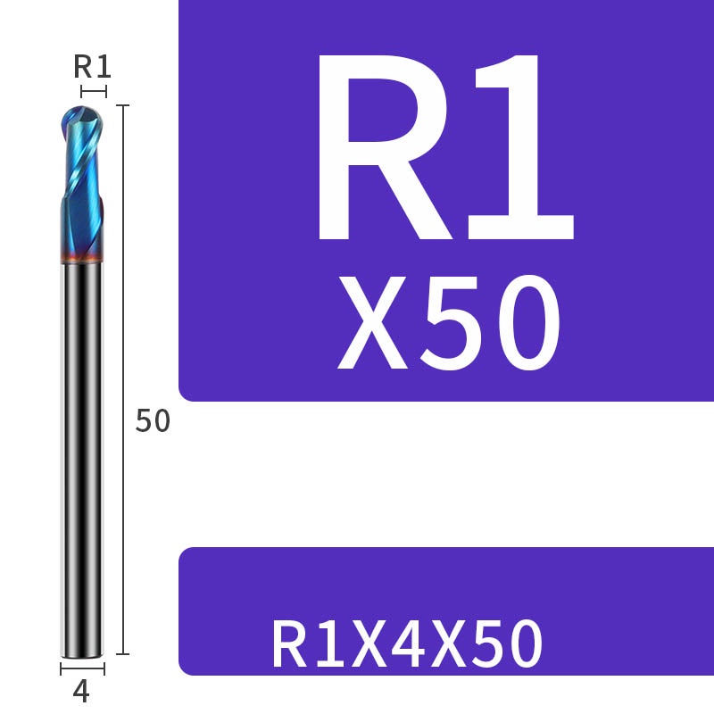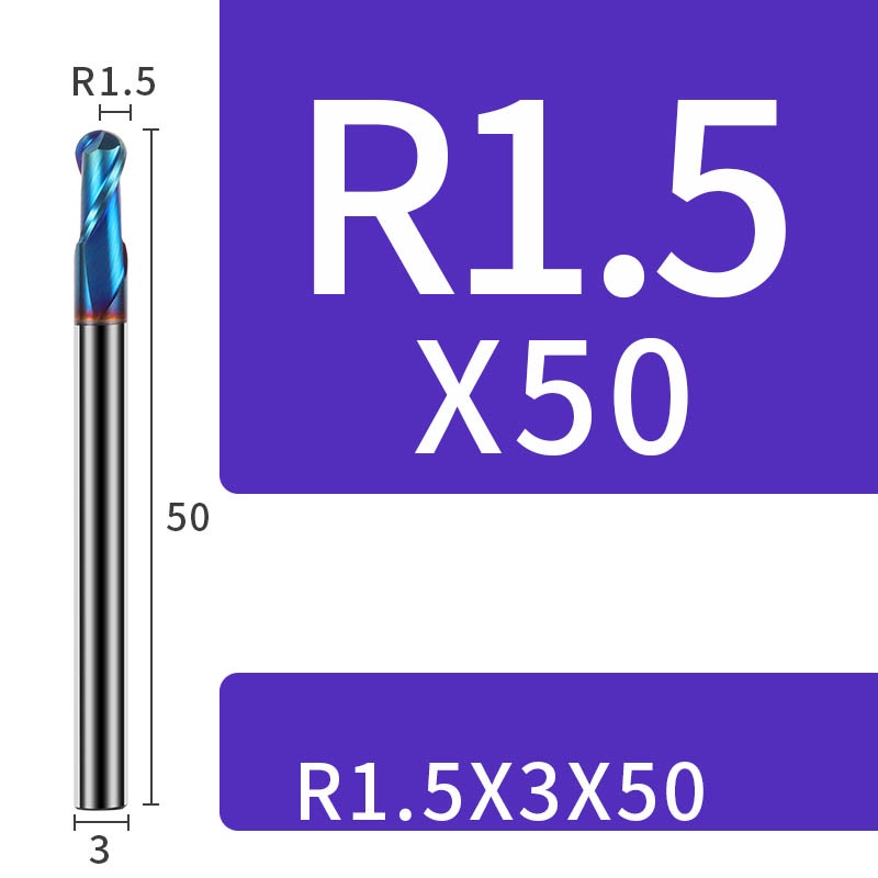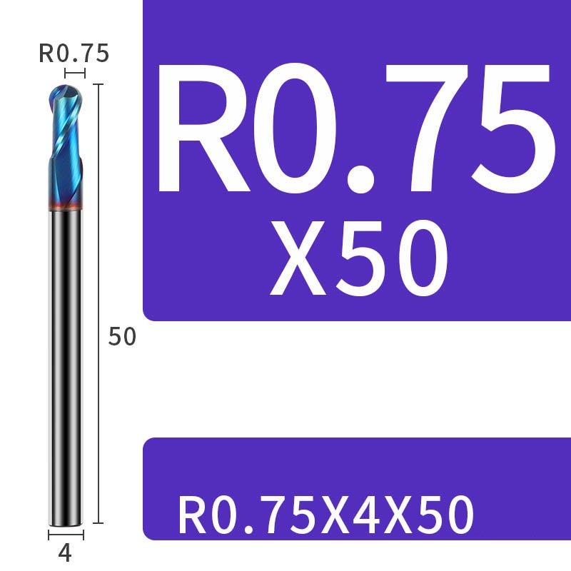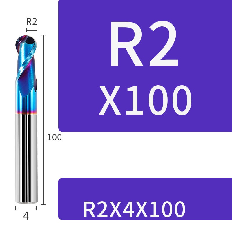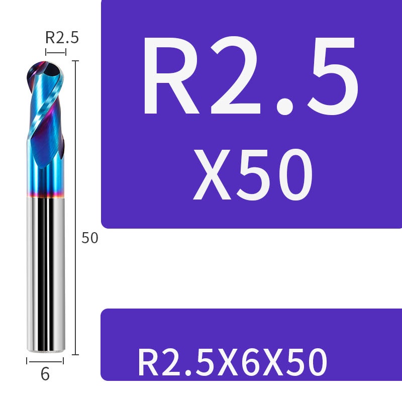 HRC65 Ball Nose End Mill CNC Router Bits Double Flute Spiral Milling Tool Tungsten Carbide Cutter with Nano Blue Coat