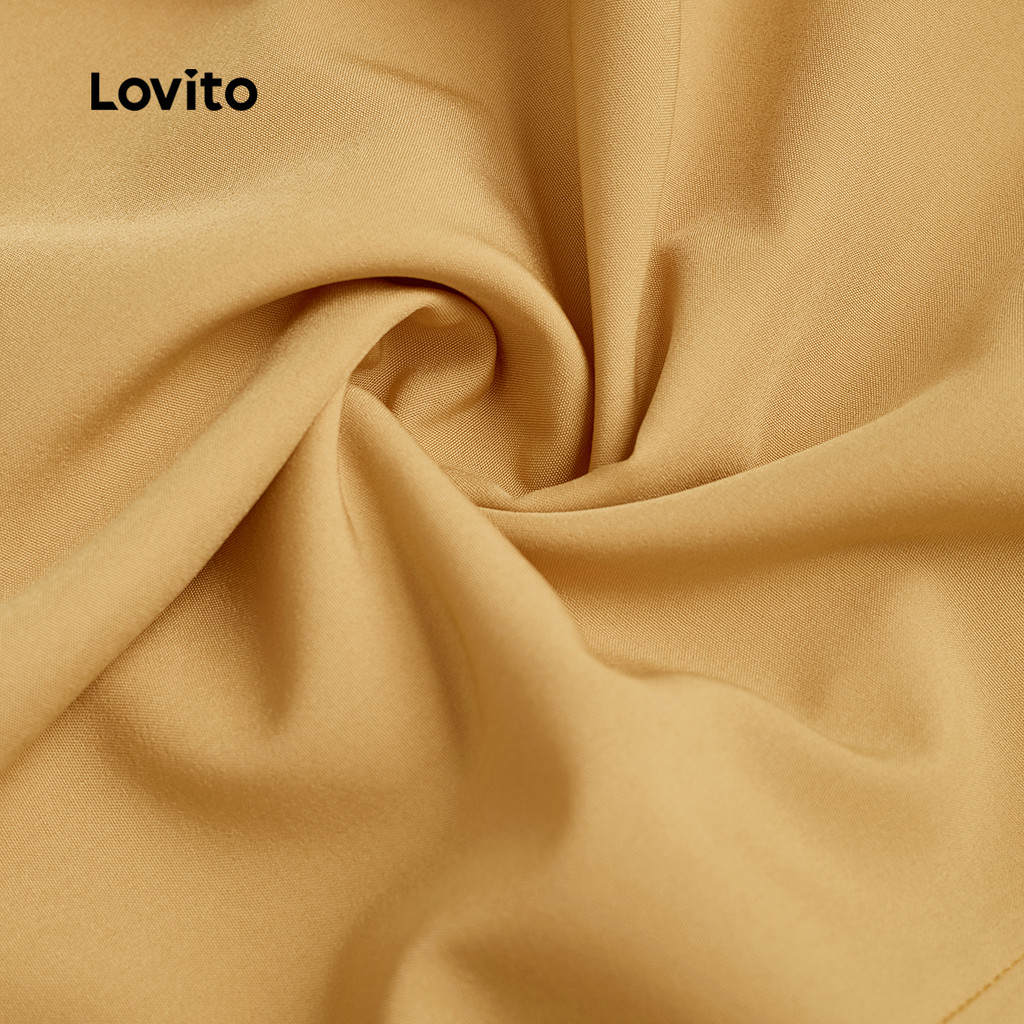 Lovito Casual Plain Double Layer Spring/Summer Yellow Dress for Women L134ED374