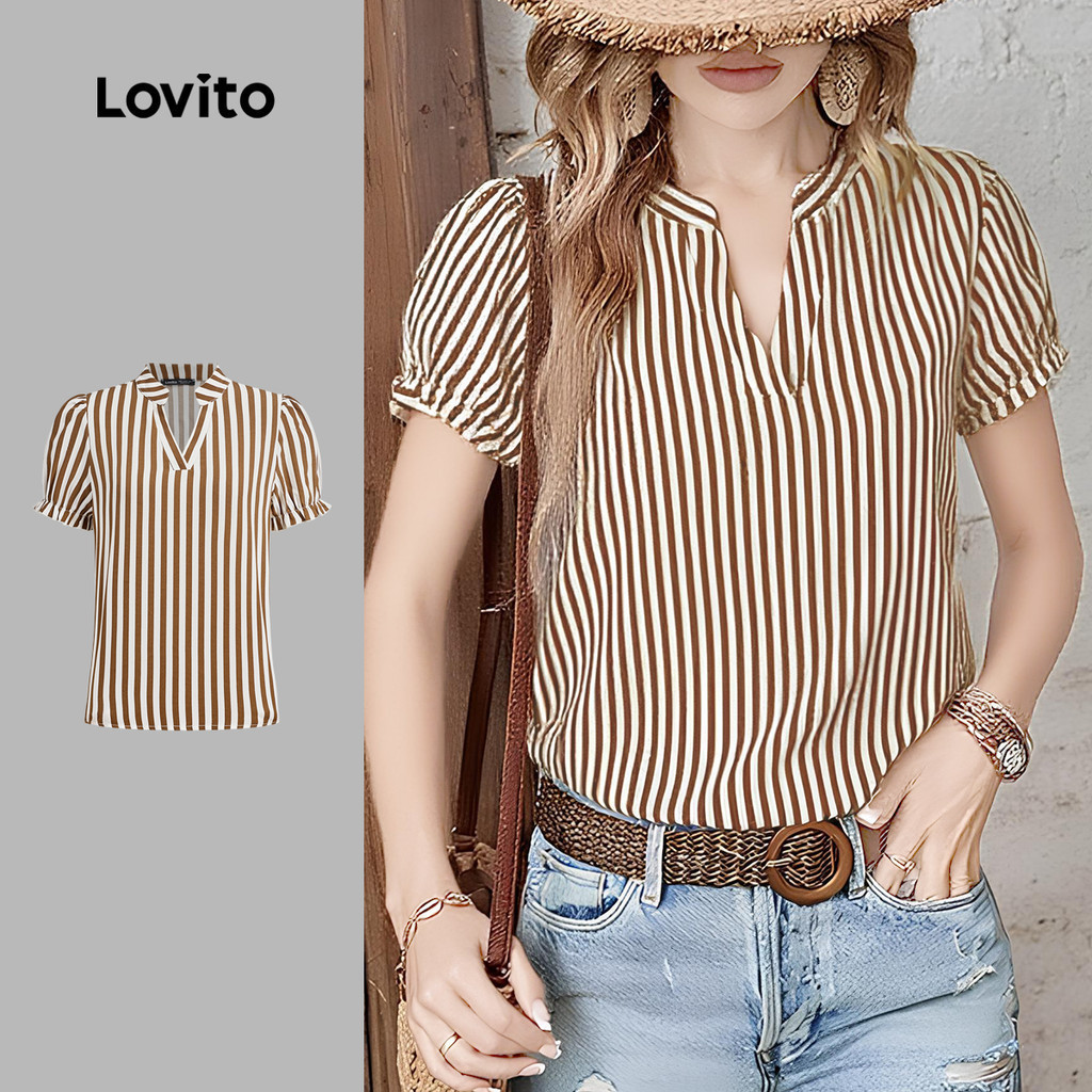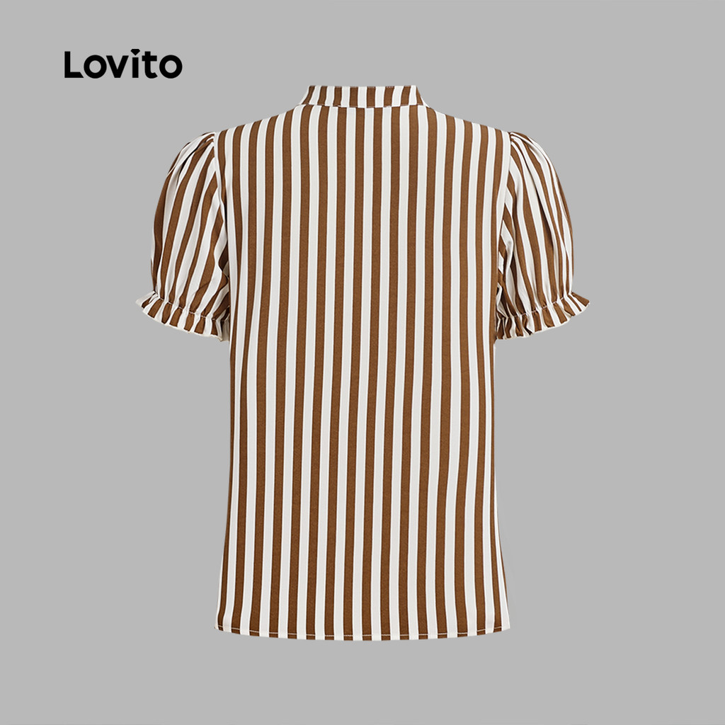 Lovito Women Casual Blouse Frill Spring/summer Brown Blouse L149LD569