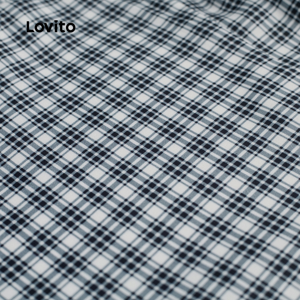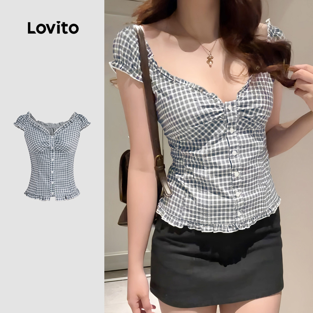Lovito Cute Blouse Lettuce Trim Button Spring/summer Black and White Blouse for Women L144AD159