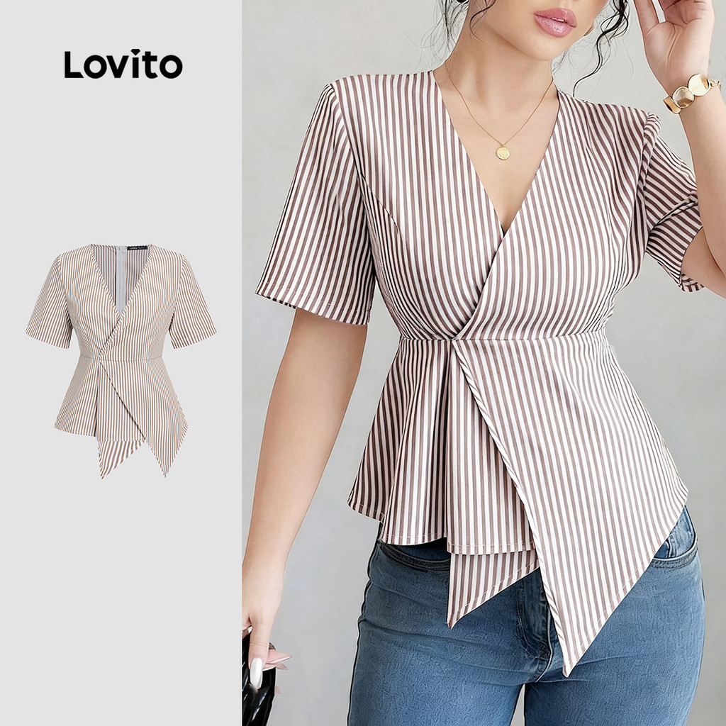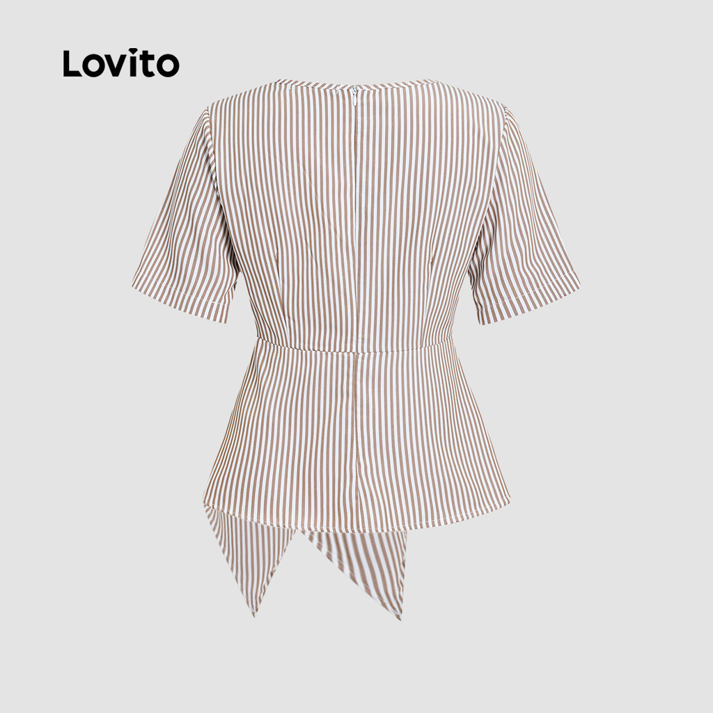 Lovito Women Casual Blouse Pleated Design Sense Single Shirt Spring/summer Khaki Blouse L171AD1025