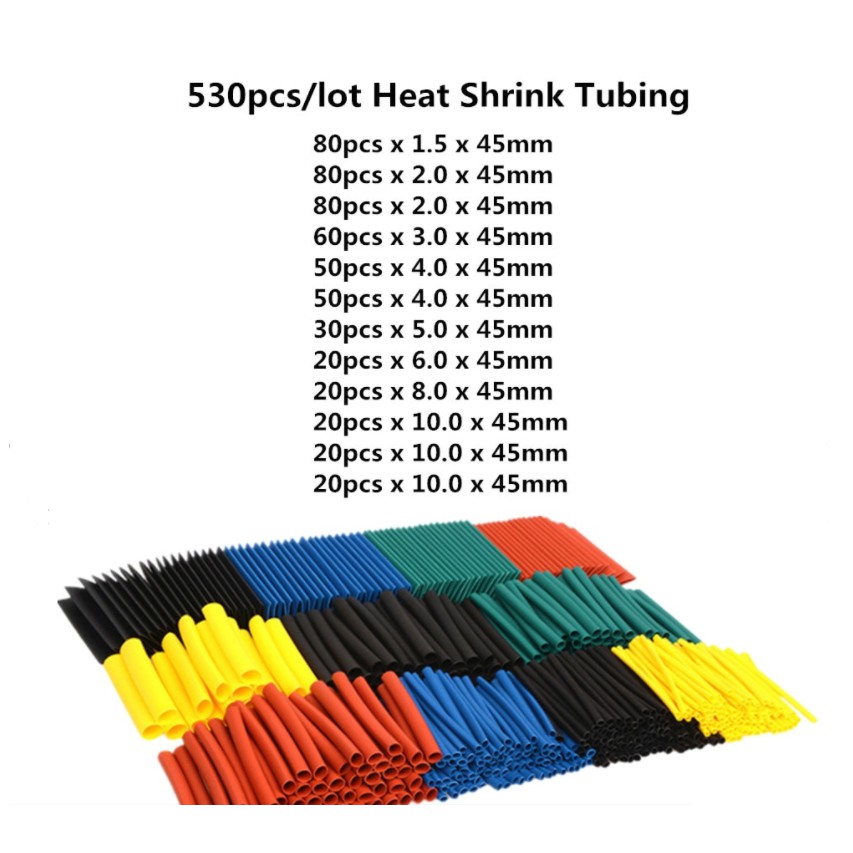 【ready stock】530Pcs Heat Shrink Tubing Insulation Shrinkable Tube 2:1 Wire Cable Sleeve Kit