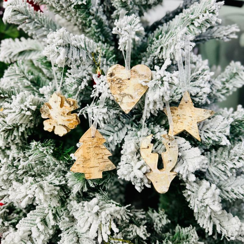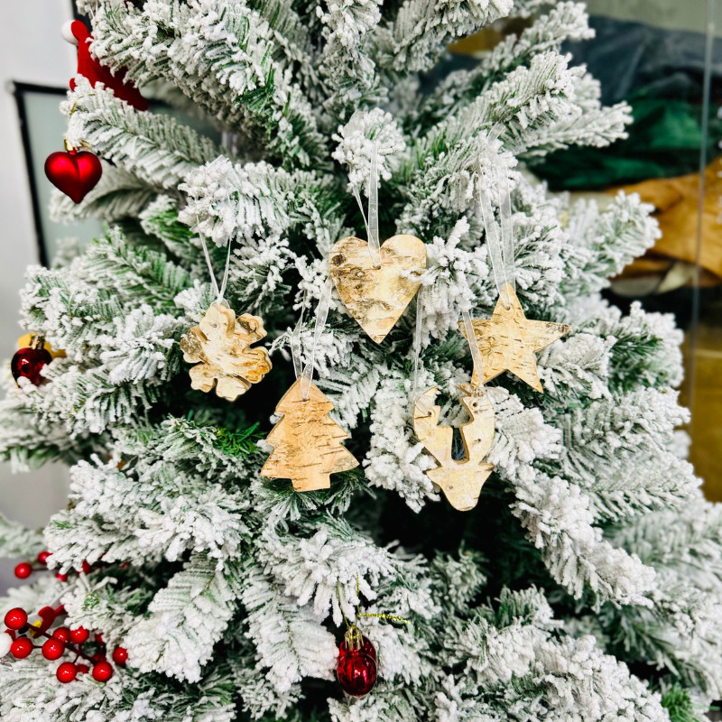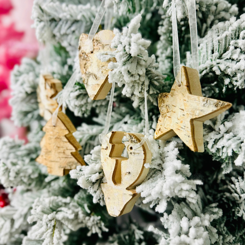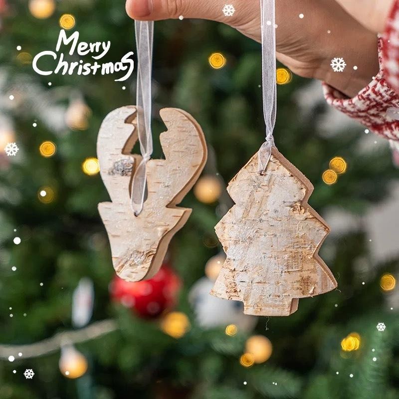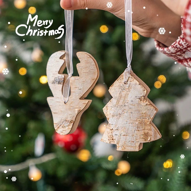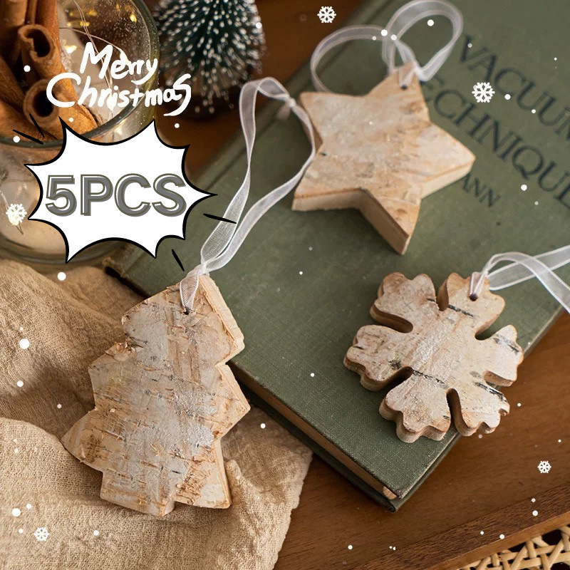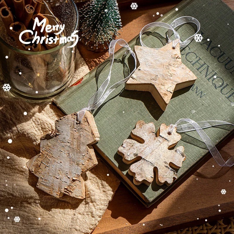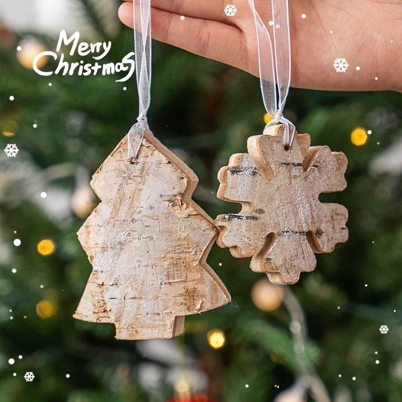 Christmas Wood Hanging Ornaments Natural Birch Snowflake Star Handmade Pendants Xmas Decor