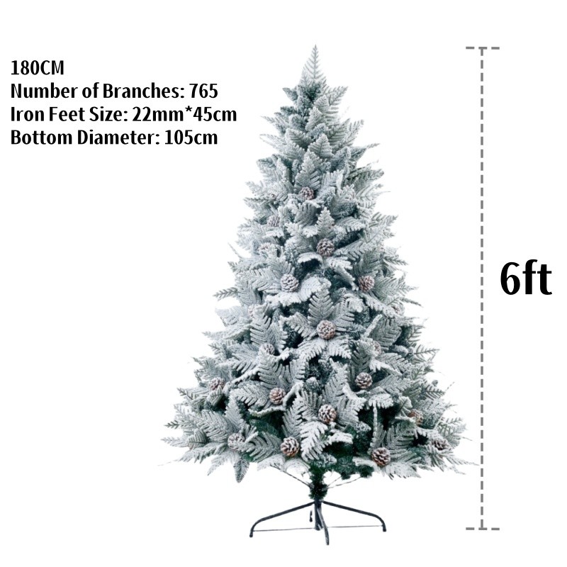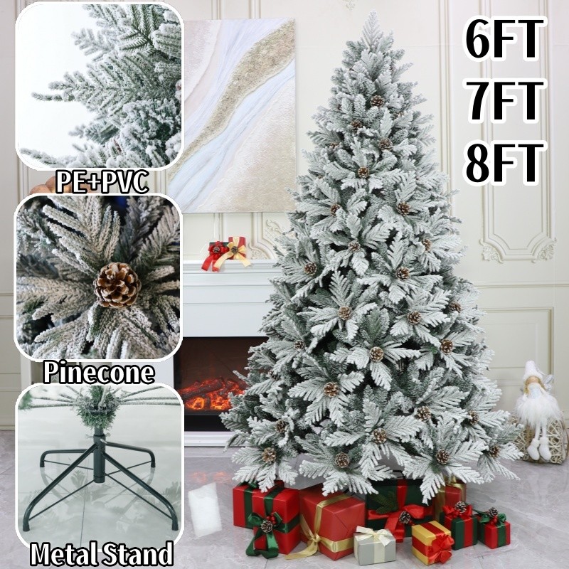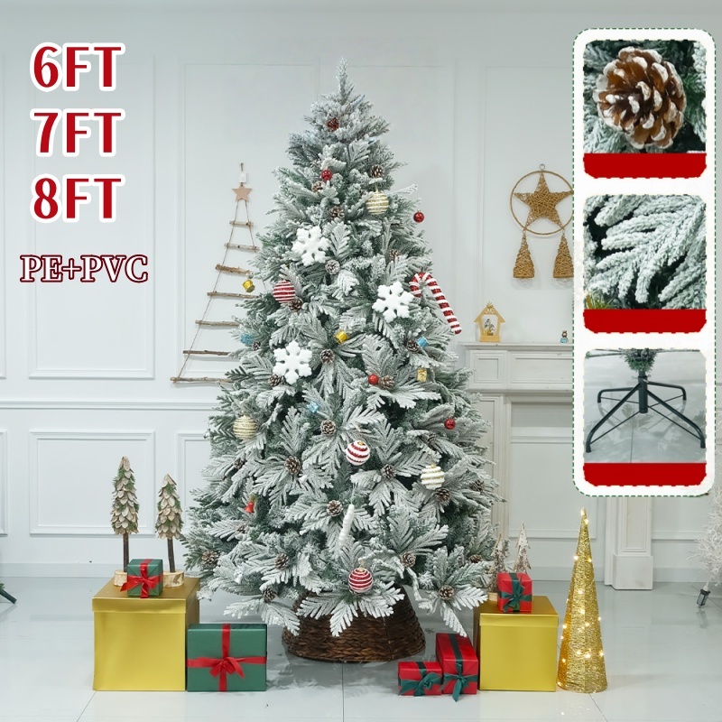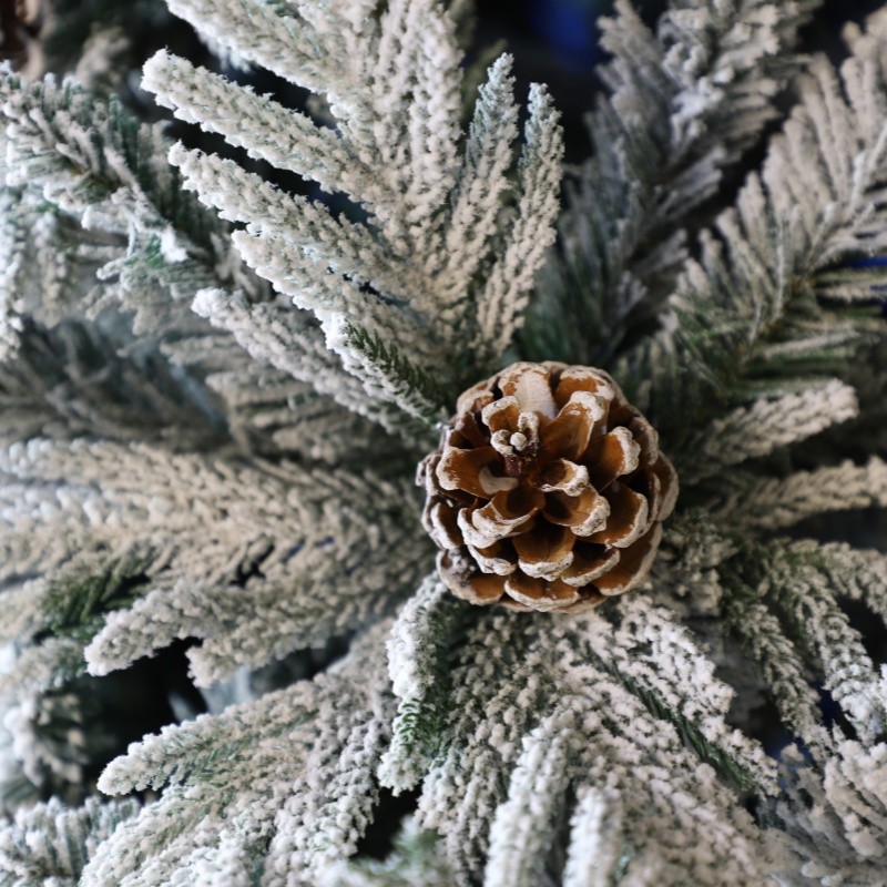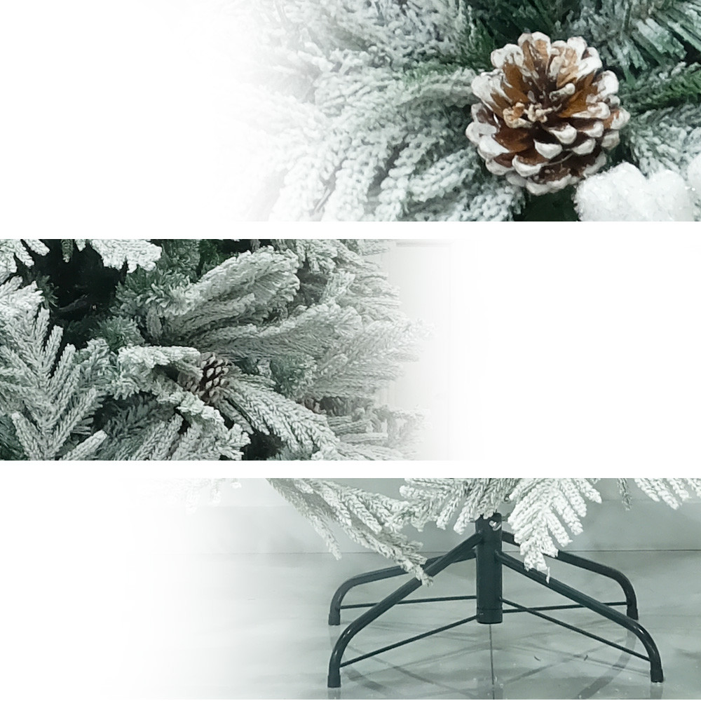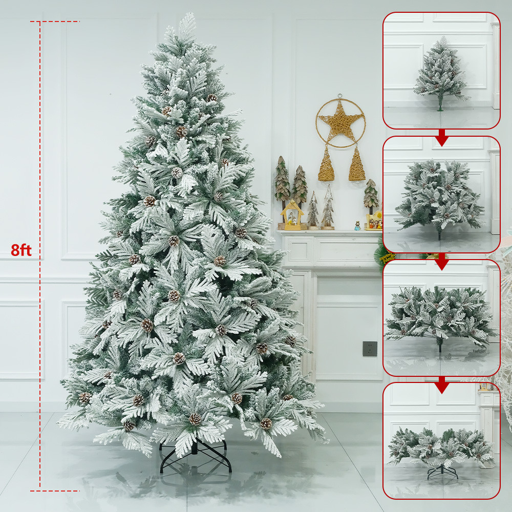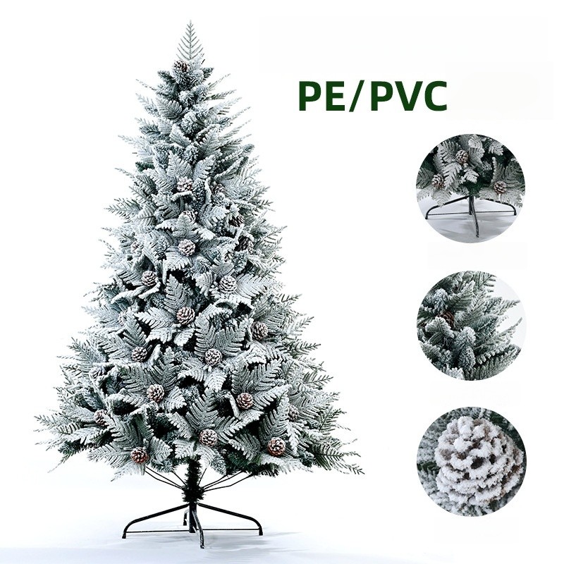 Flocked Snow Christmas Tree With Pinecone PE+PVC Branch Thicken Xmas Tree Automatic for Holiday