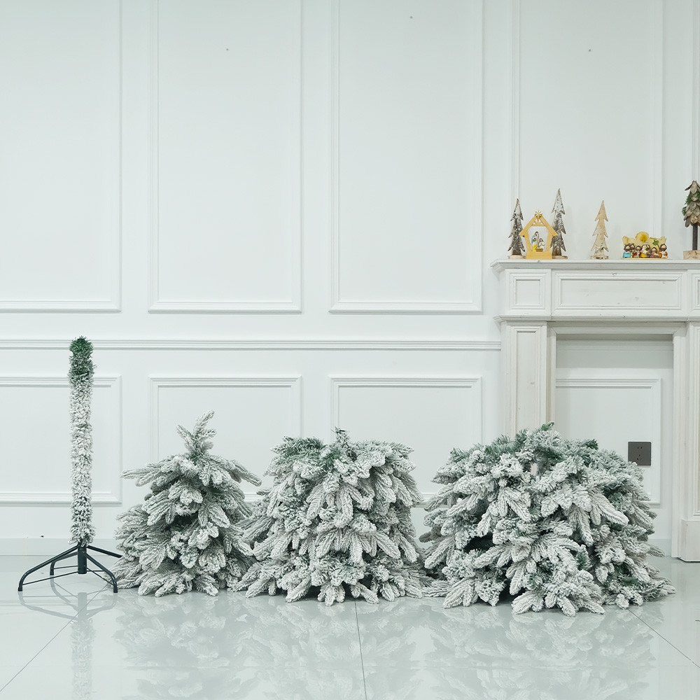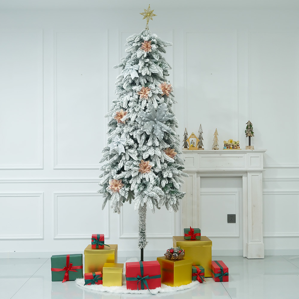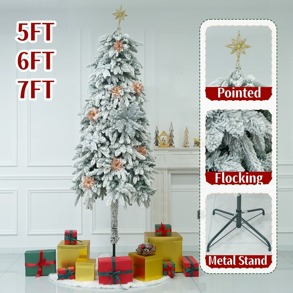 Slim Snow Christmas tree 5/6/7FT PE+PVC Pointed Flocking Elegance Christmas Tree Downward Growing