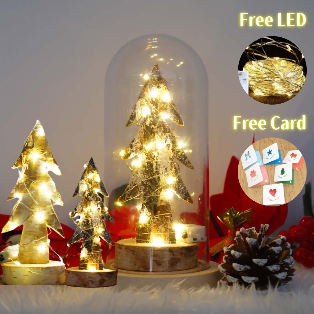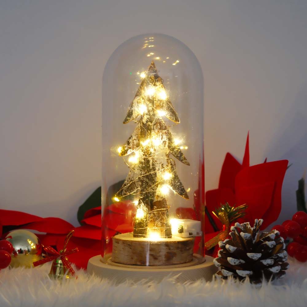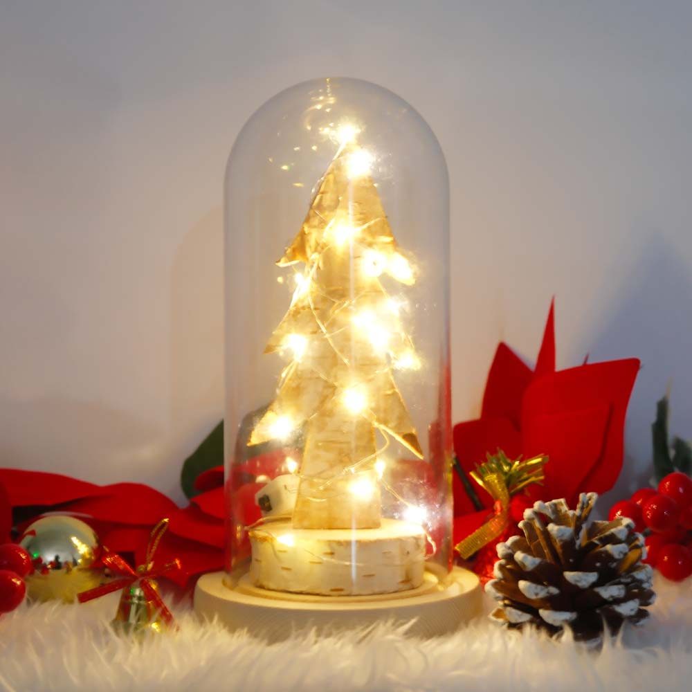 Snow Wooden Christmas Trees Glass Cover Dome with LED for Holiday Decoration christmas Gift