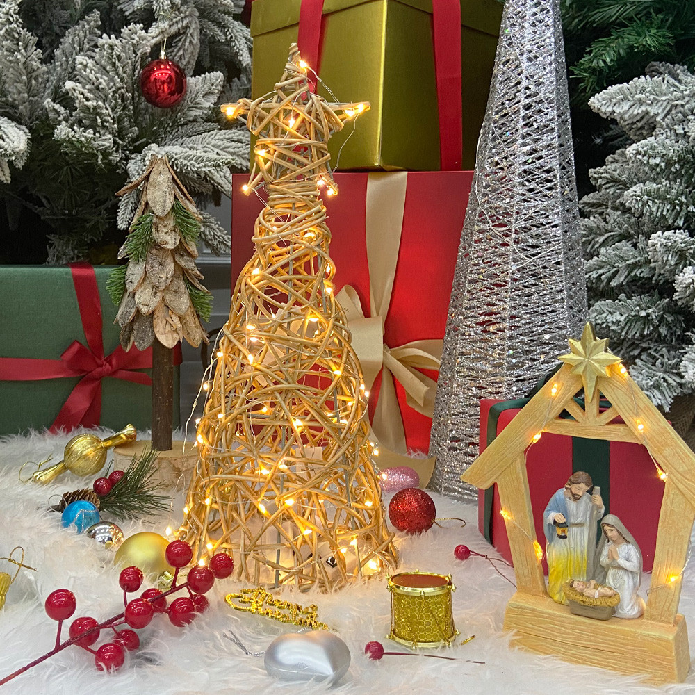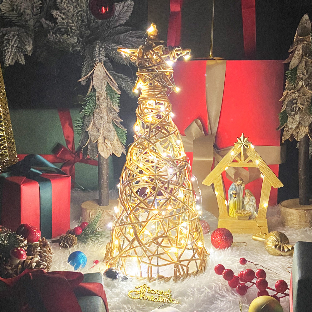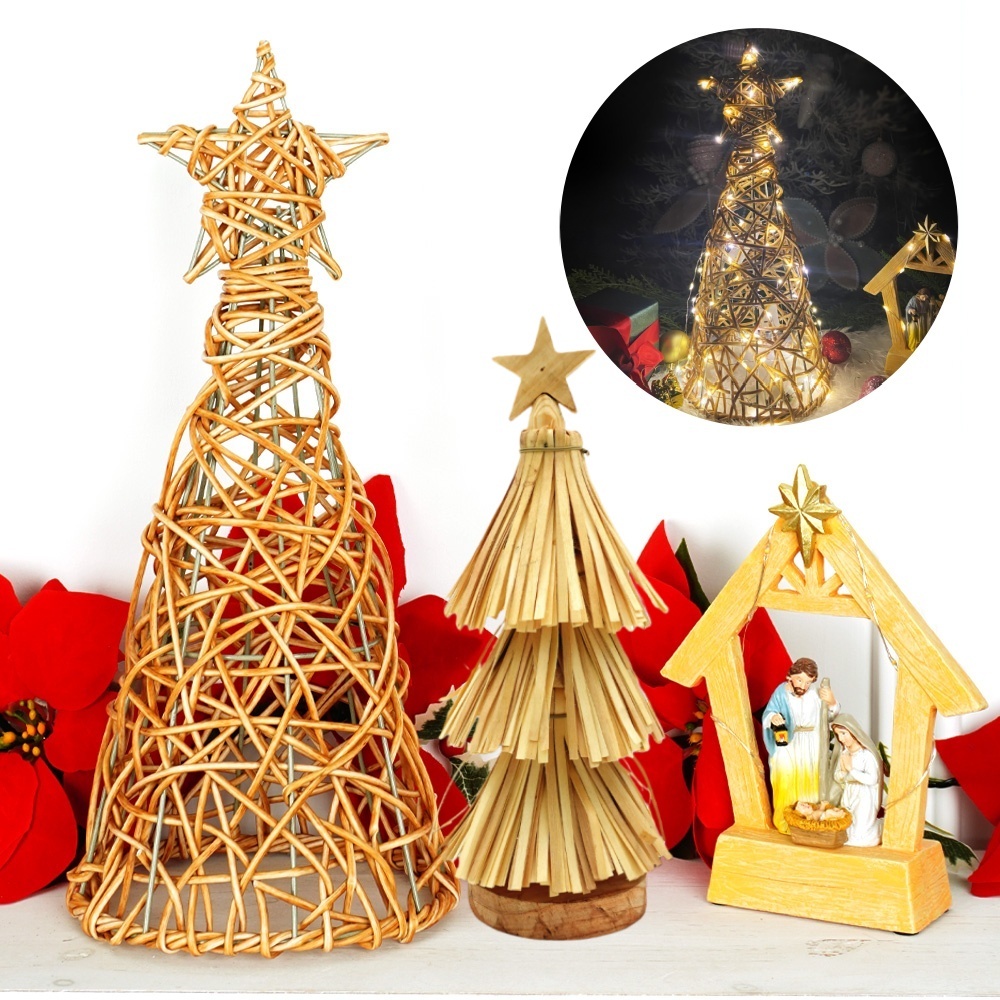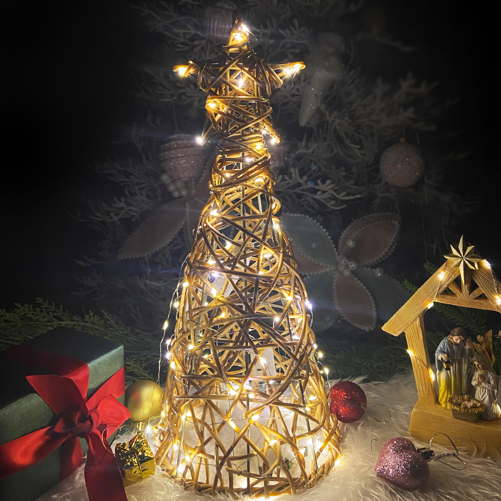Rattan Christmas Tree Pentagram pillar Parol Native Rattan Handicrafts Tabletop Christmas Tree