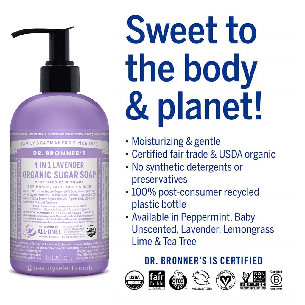 Dr Bronner's LAVENDER Organic Sugar Soap 355 ml