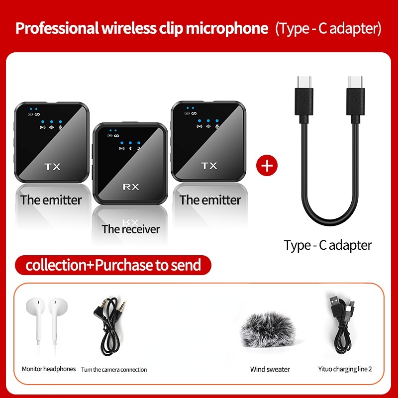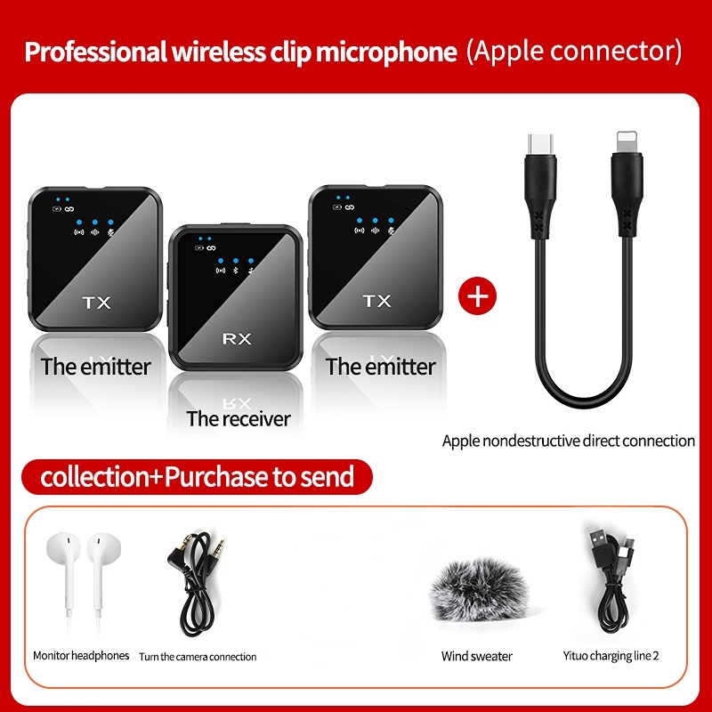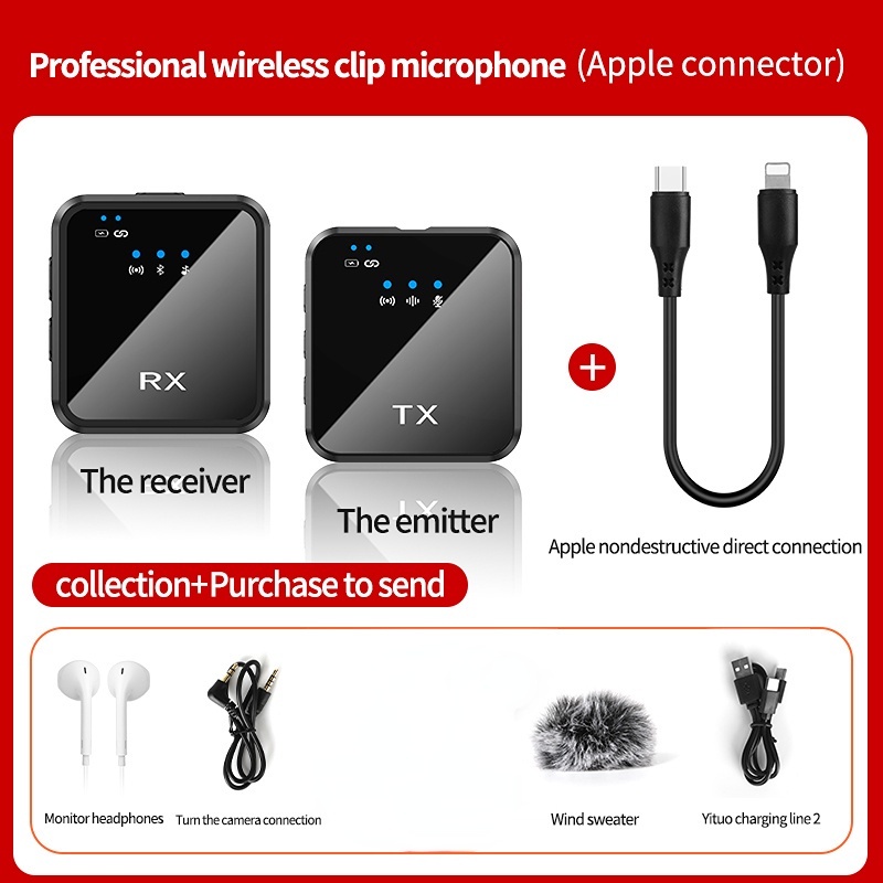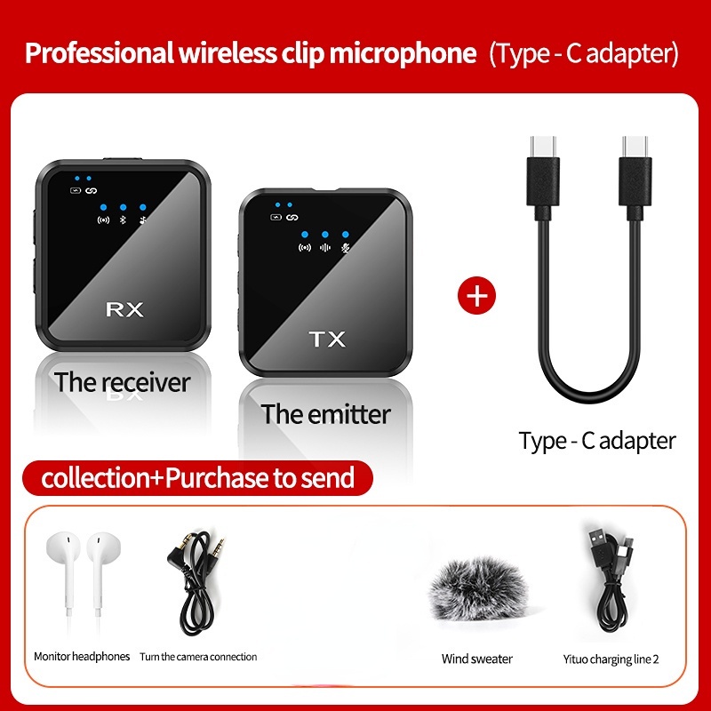 Wireless Microphone System 2.4GHz Interview Lavalier Lapel Mic Receiver Kit for Phones DSLR