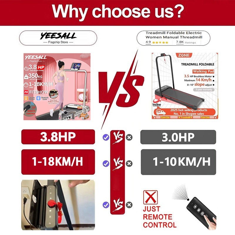Yeesall 3.8HP Treadmill with KeyControl Portable treadmill 1-18KM/H KeyControl Walding Pad treadmill