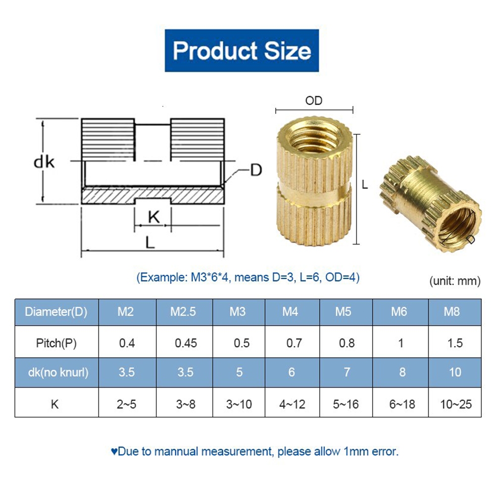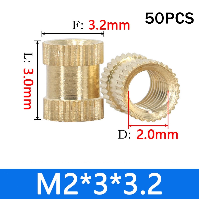 50PCS Brass Insert Nut M2 M3 Knurled Threaded Straight Through T-shaped Nut For 3D Printing