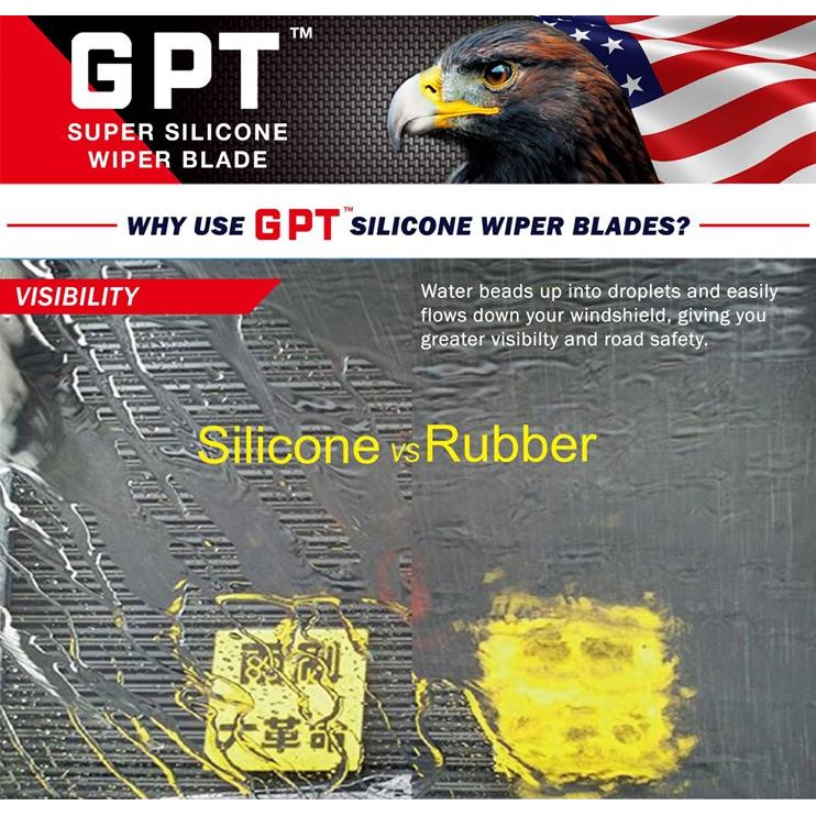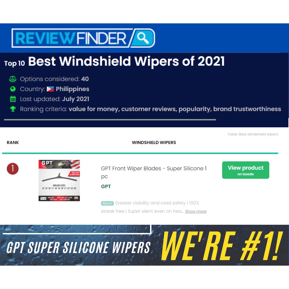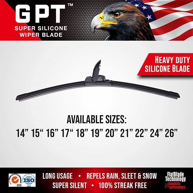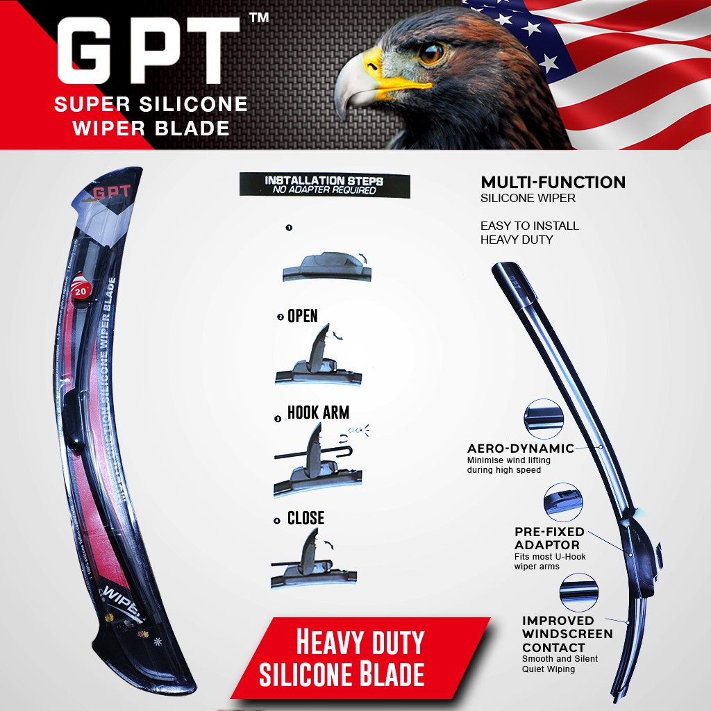 GPT Front Wiper Blade - Super Silicone 1 pc - Universal Type Banana Wiper - Heavy Duty - Streak Free