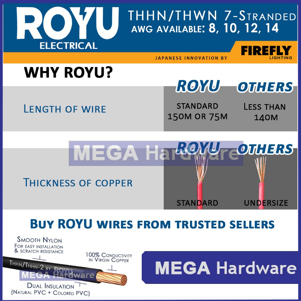 ROYU THHN / THWN 7 Stranded wire (#8, #10, #12, #14) 75m 150m (100m for #8)