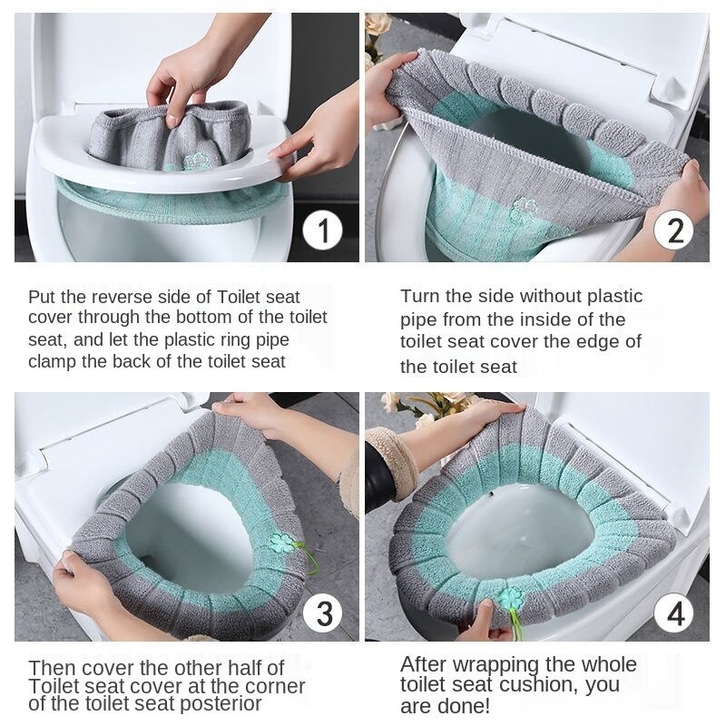 [In stock]Toilet Seat Cushion Household Toilet Mat Thick Potty Sets Northern European-Style Toilet Seat Cover Universal Fleece-Lined Toilet Seat Washable
