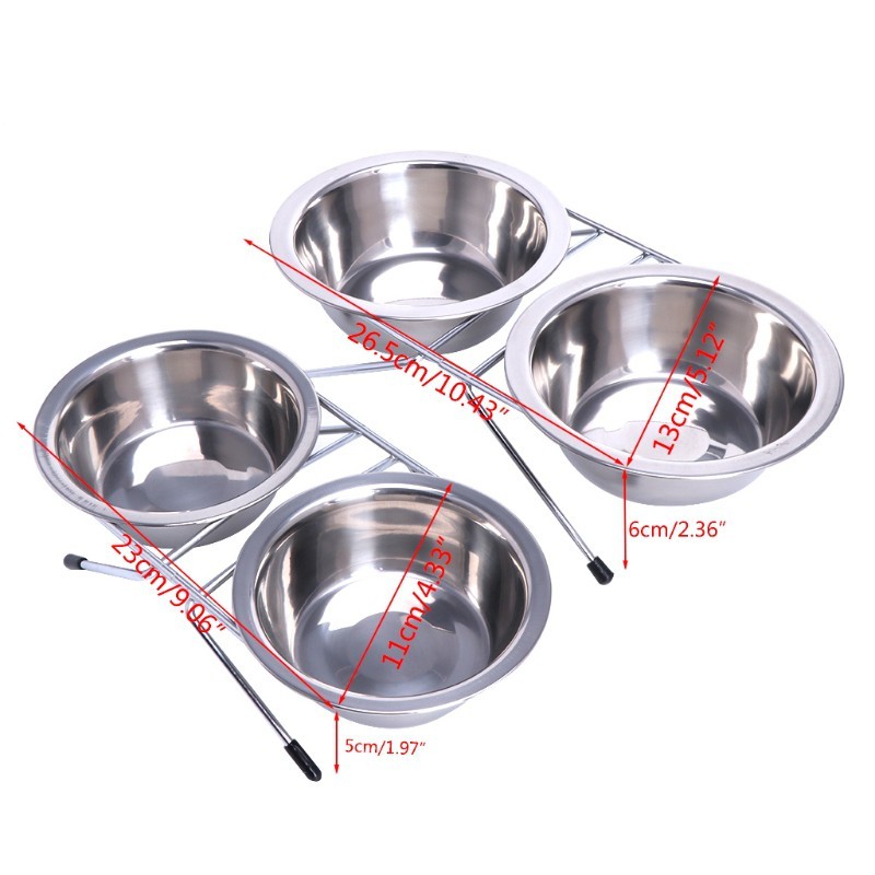 11-21cm 4 sizes stainless dog double bowl with stand dog plate bowl for dogs