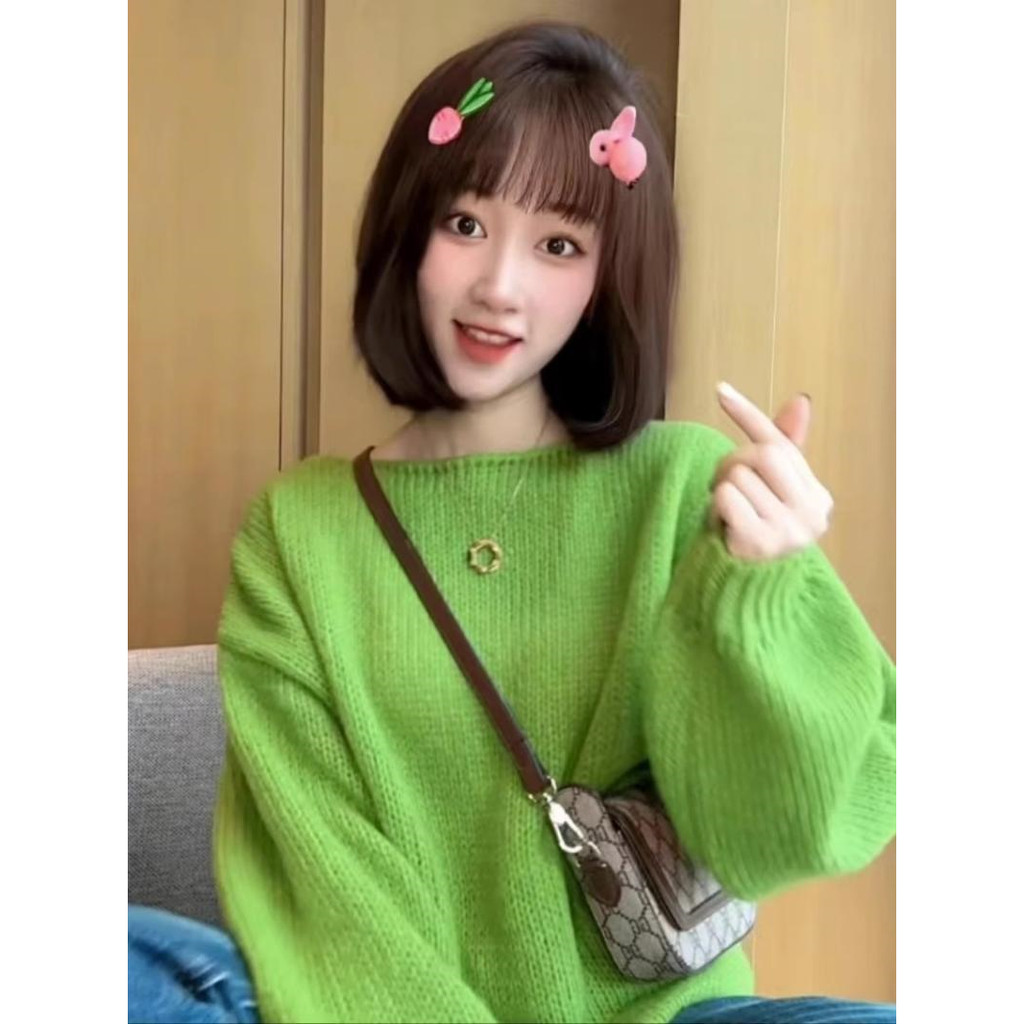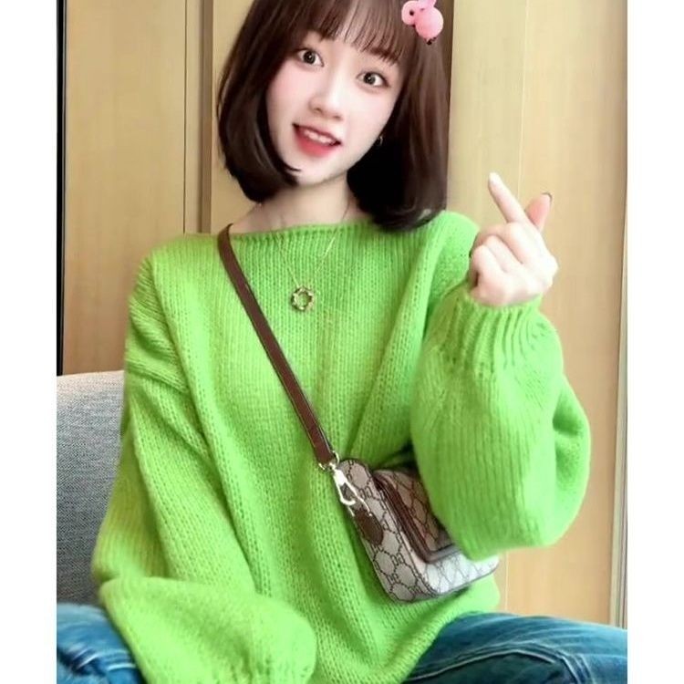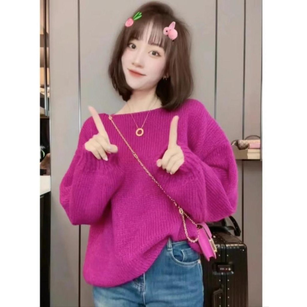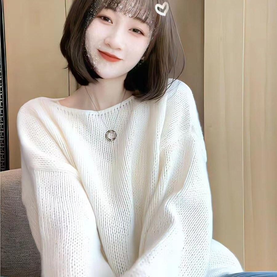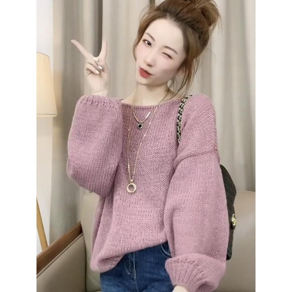Korean Version New Fashionable Sweater Loose Long Sleeved Solid Color Round Neck Top