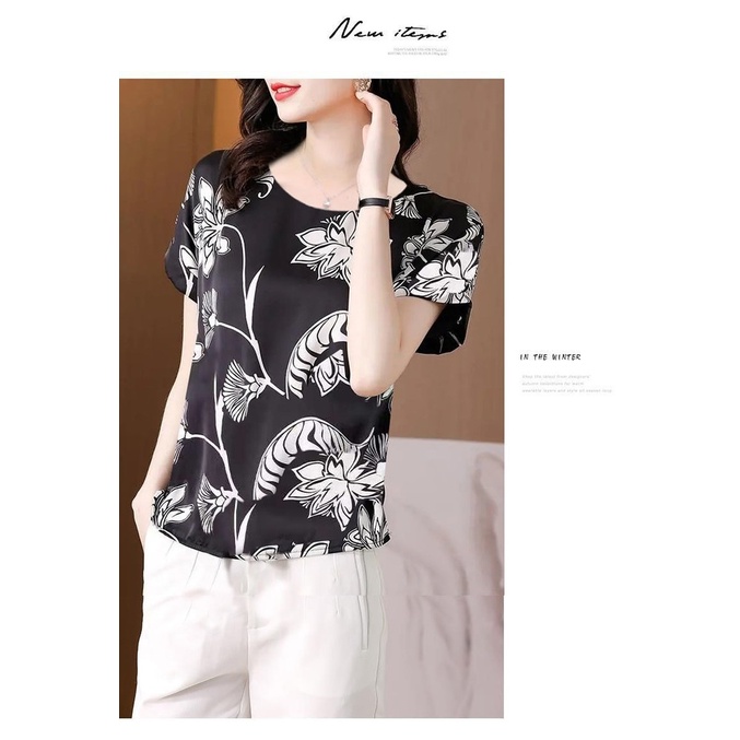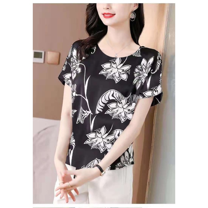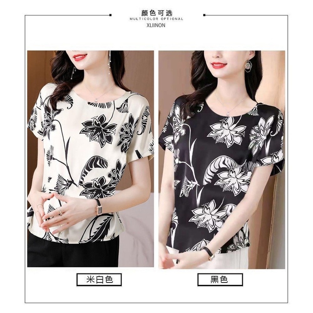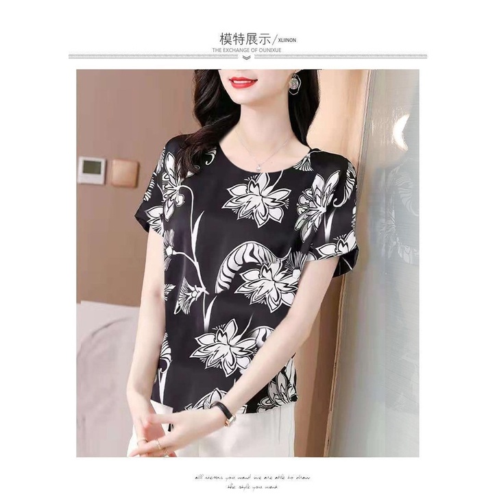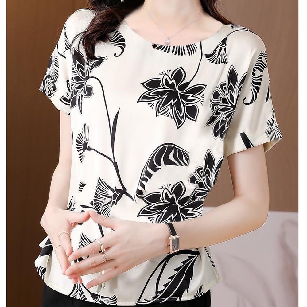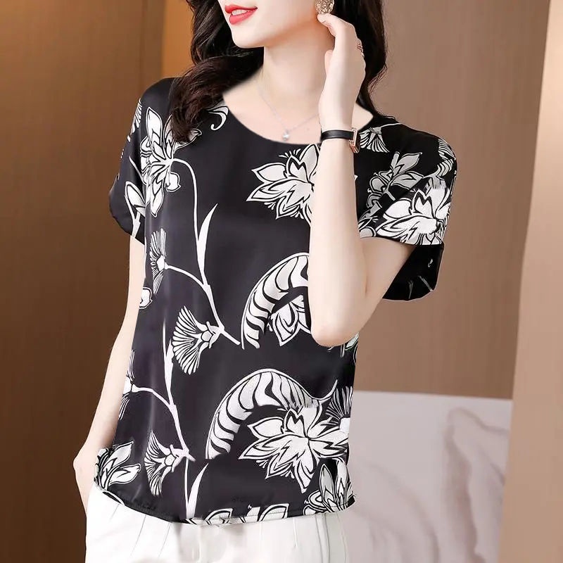 New Fashion Ice Silk Short-sleeved T-shirt Round Neck Printing Plus Size Top