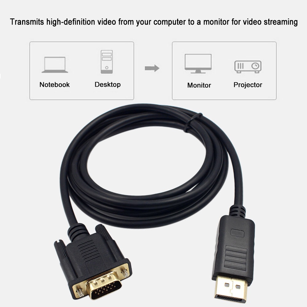 DisplayPort DP to VGA Adapter Male to Male Gold-Plated Cord 1.5M Cable