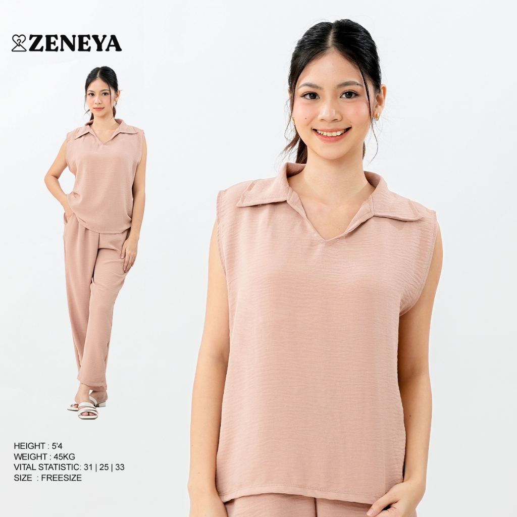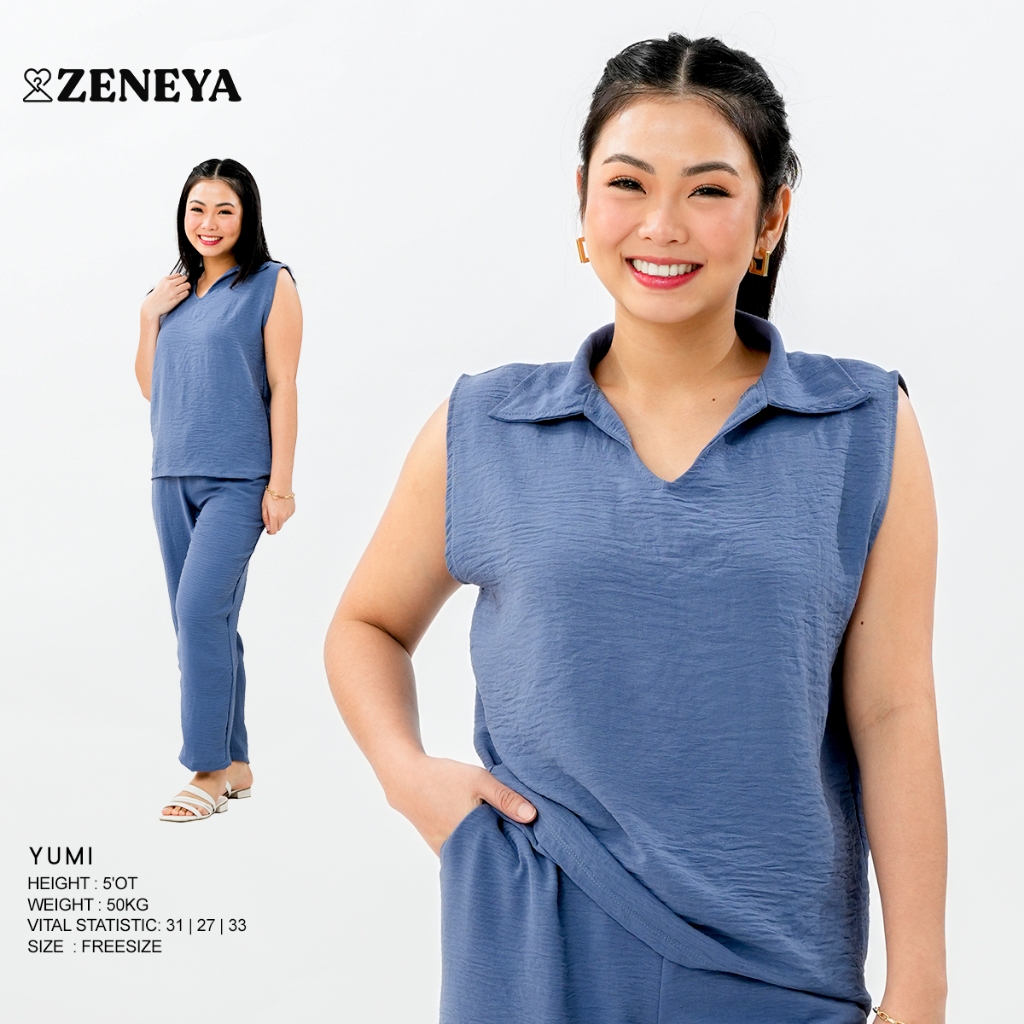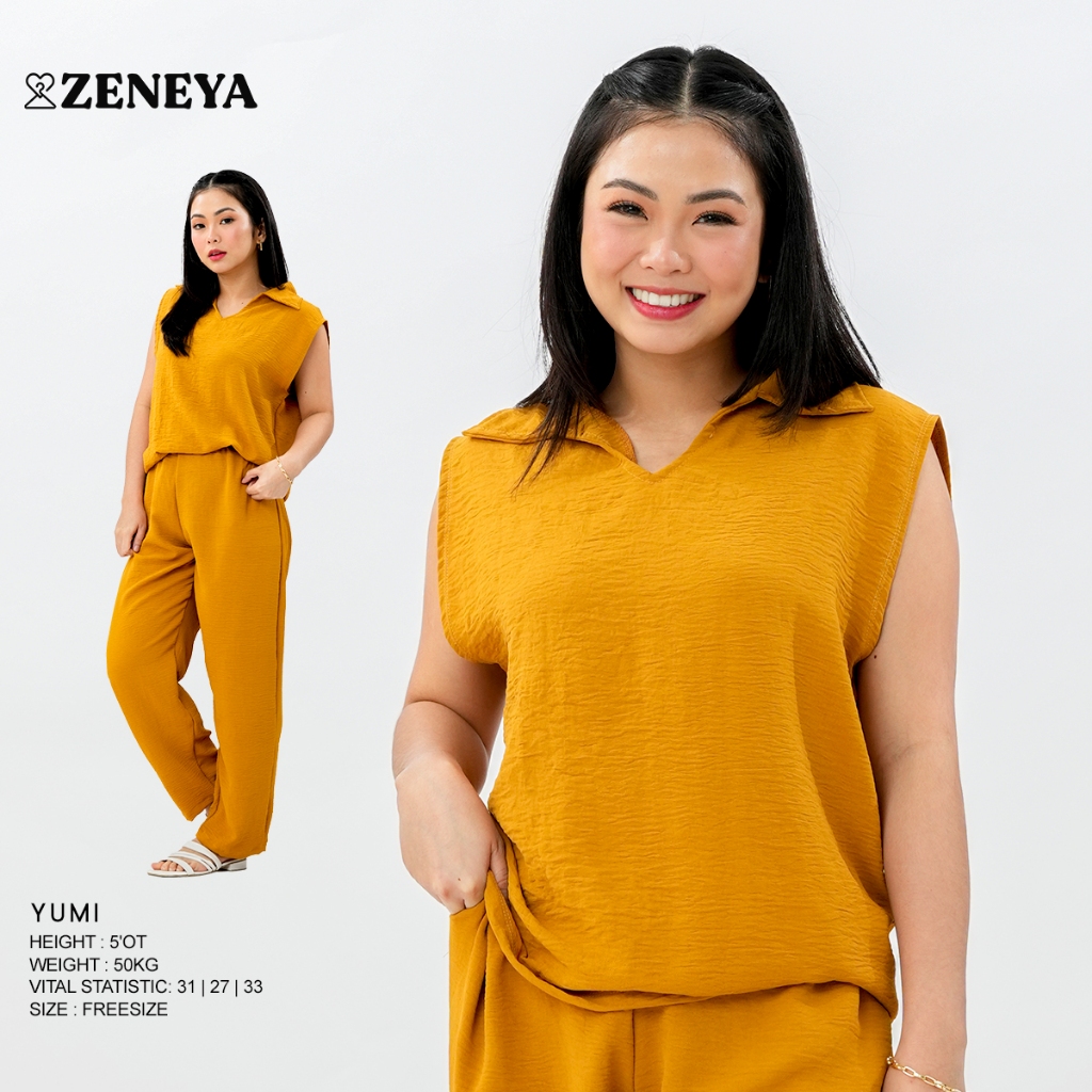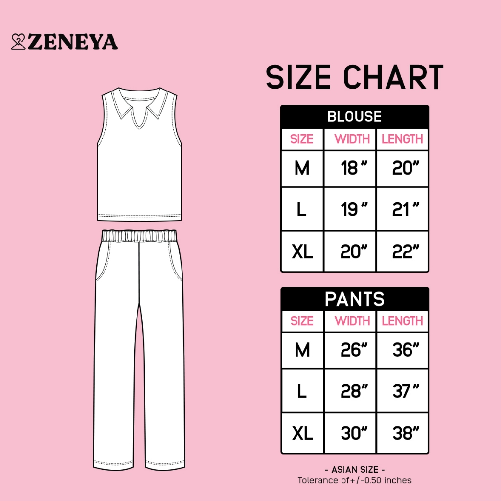 Zeneya Tree Bark Crepe Blouse and Pants Terno Coordinates For Women Set Top Tops Wide Leg Coords