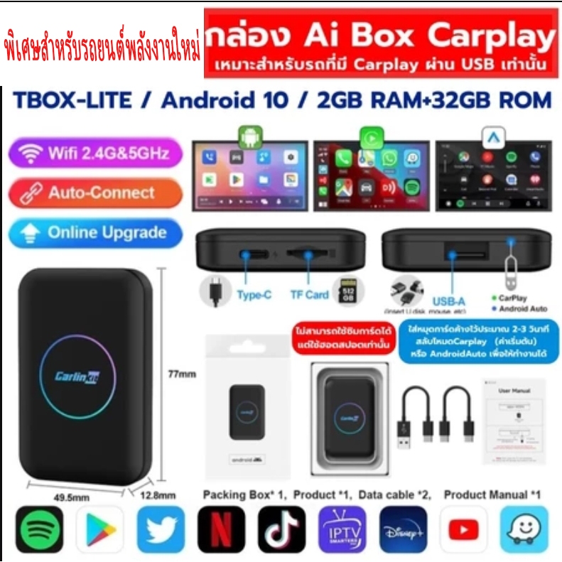 Brand new CarlinKit car-to-car interconnection box wired to wireless car box TBOX-LITE 2024 Android 10 CarPlay&Android Auto wireless adapter box