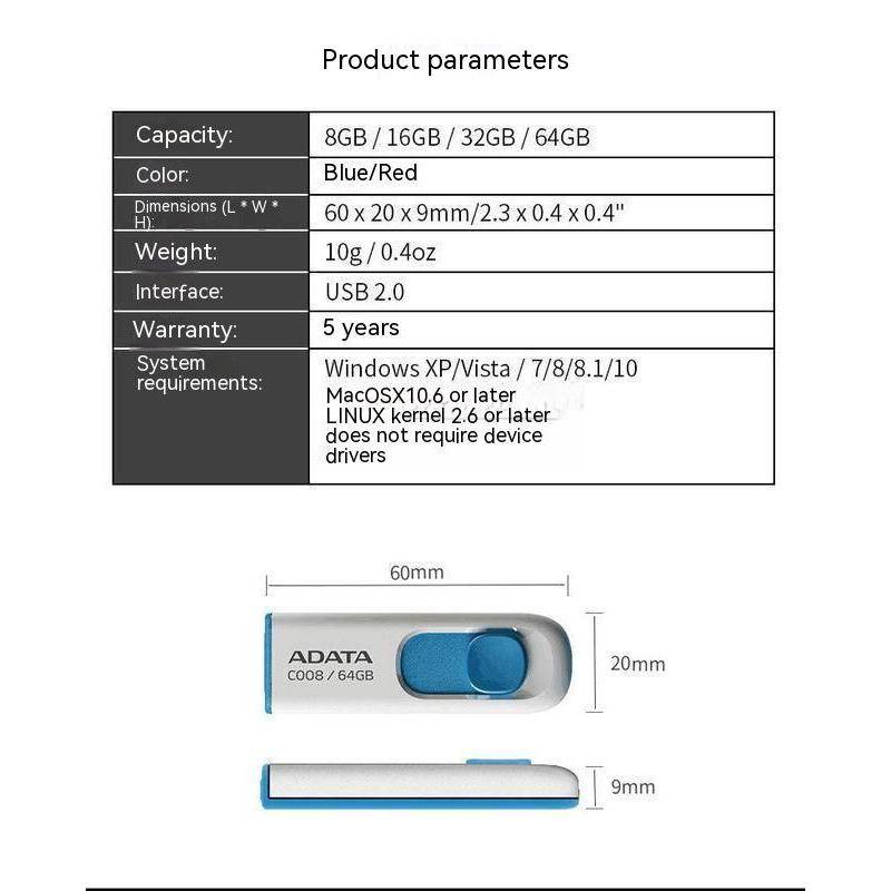 Adata C008 Flash Drive 16G32G64G Computer Car Memory Business Student USB2.0