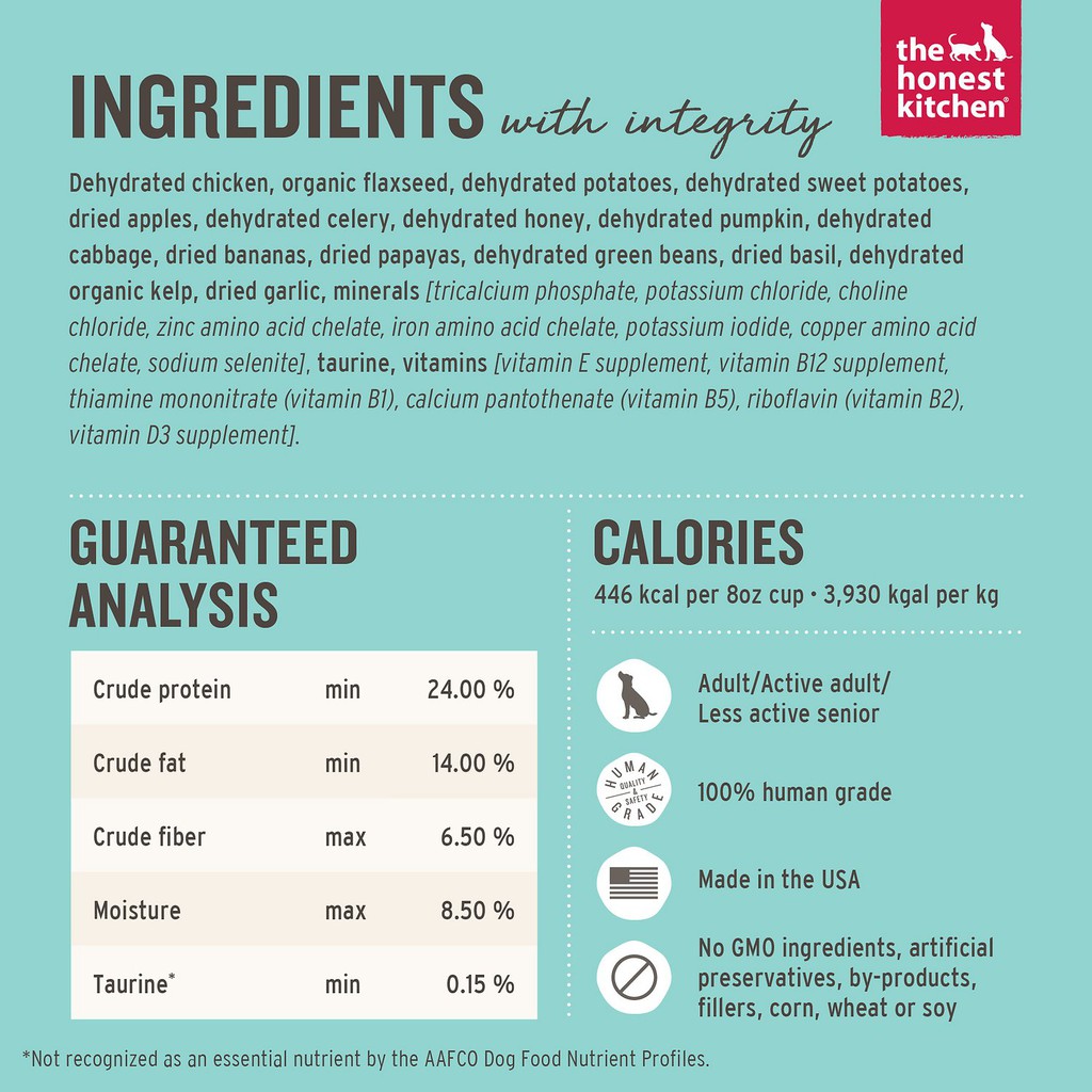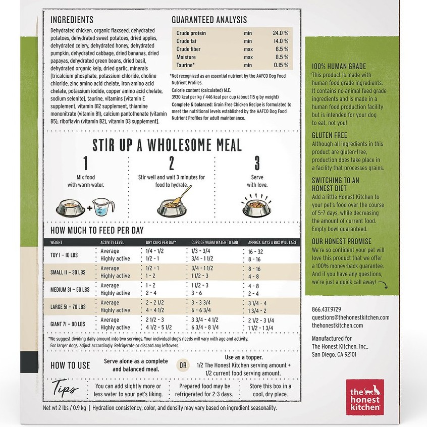 The Honest Kitchen Human Grade Dehydrated Dog Food – Grain Free Chicken Recipe Complete & Balanced