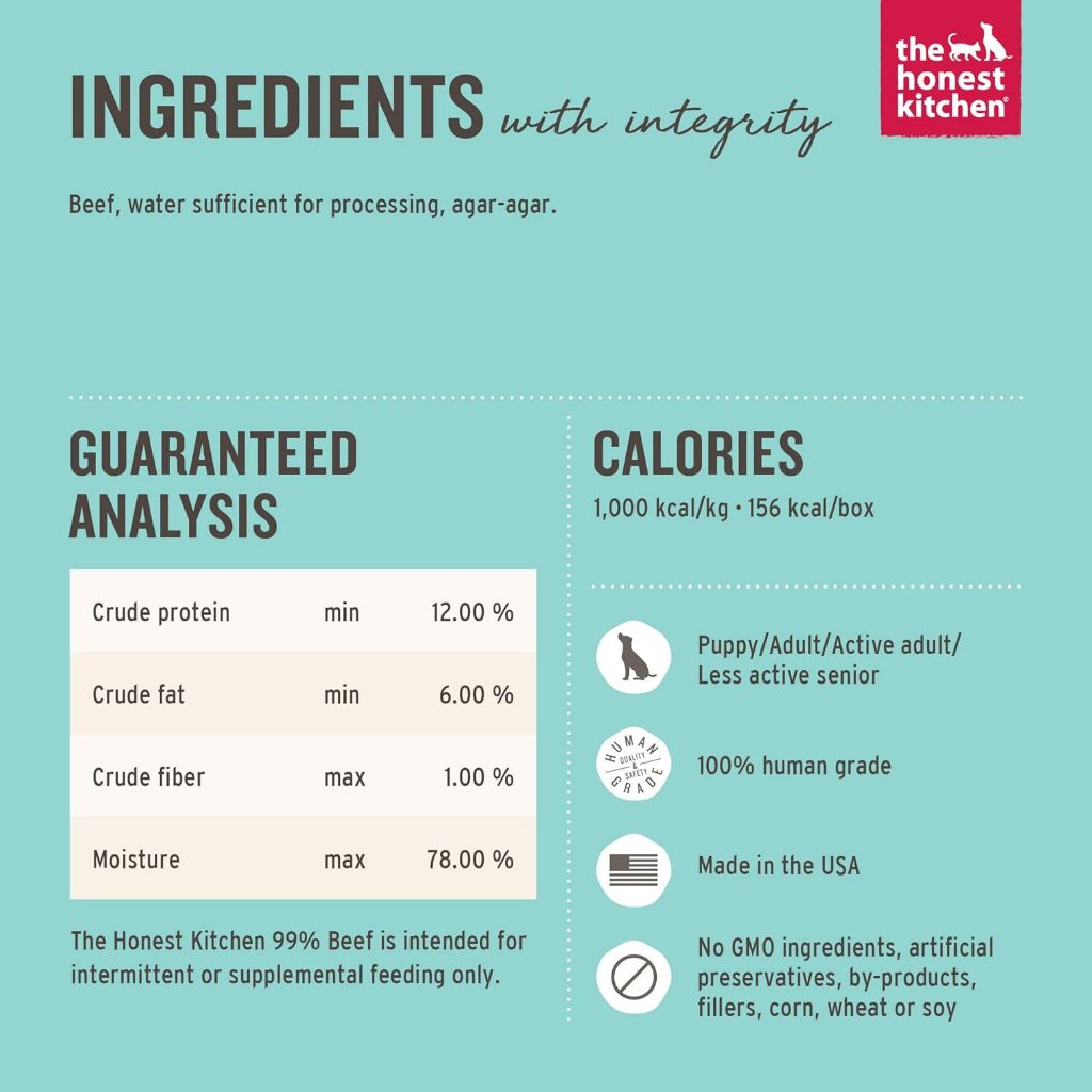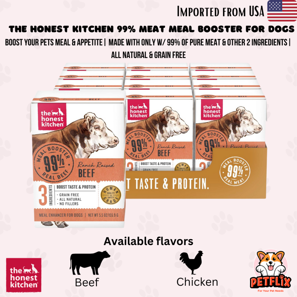 The Honest Kitchen Meal Booster 99% Beef Dog Food Topper for Picky Eaters Protein & Appetite Booster