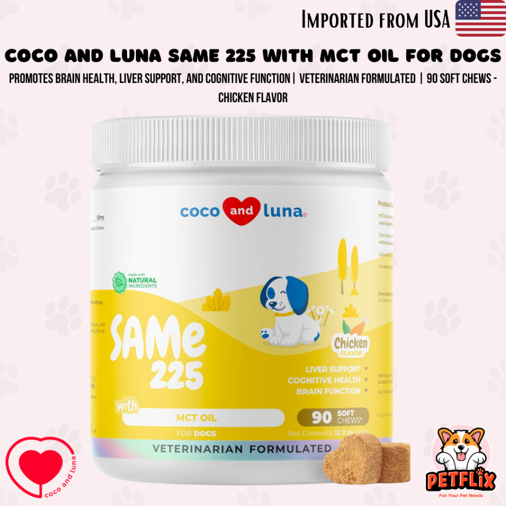 Coco and Luna SAMe 225 for Dogs S-Adenosyl-L-Methionine 90 Soft Chews Promotes Brain Liver Health