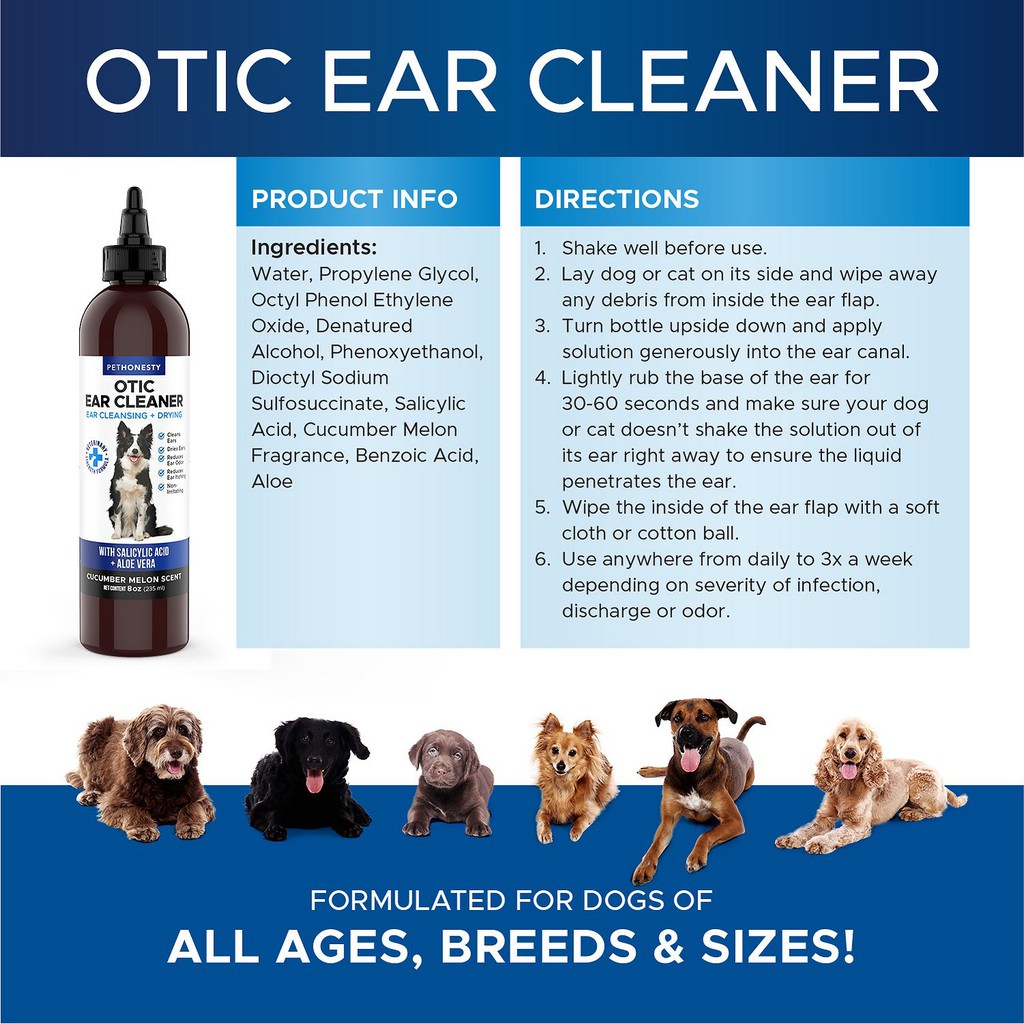 Pet Honesty Otic Dog Ear Cleaner, Odor, Itching & Ear Infection Treatment Cucumber Melon Scent 235ml