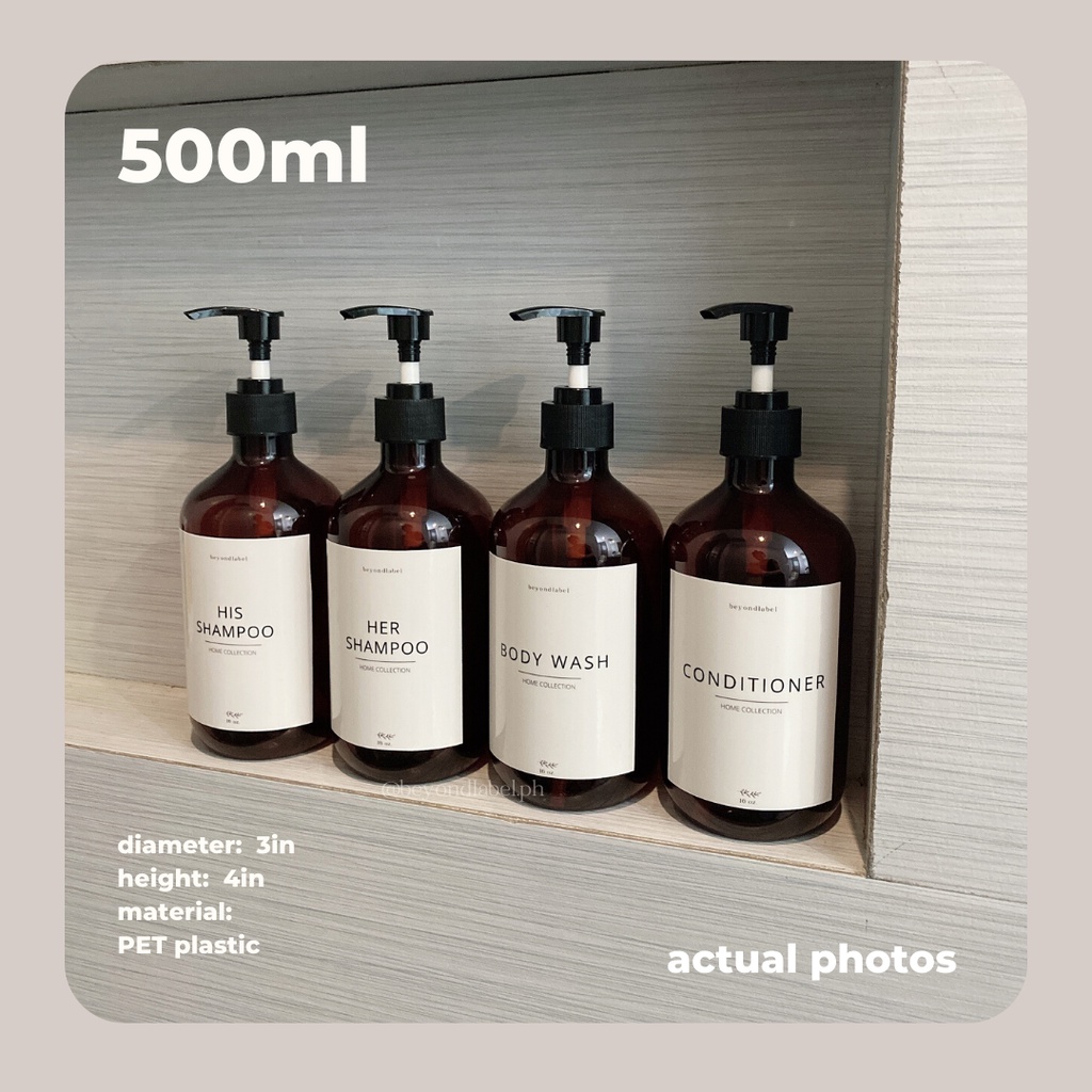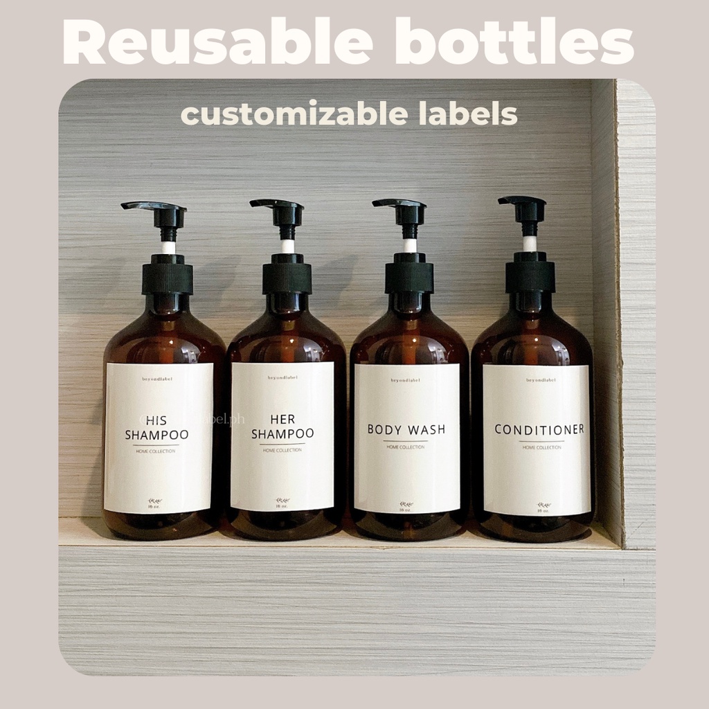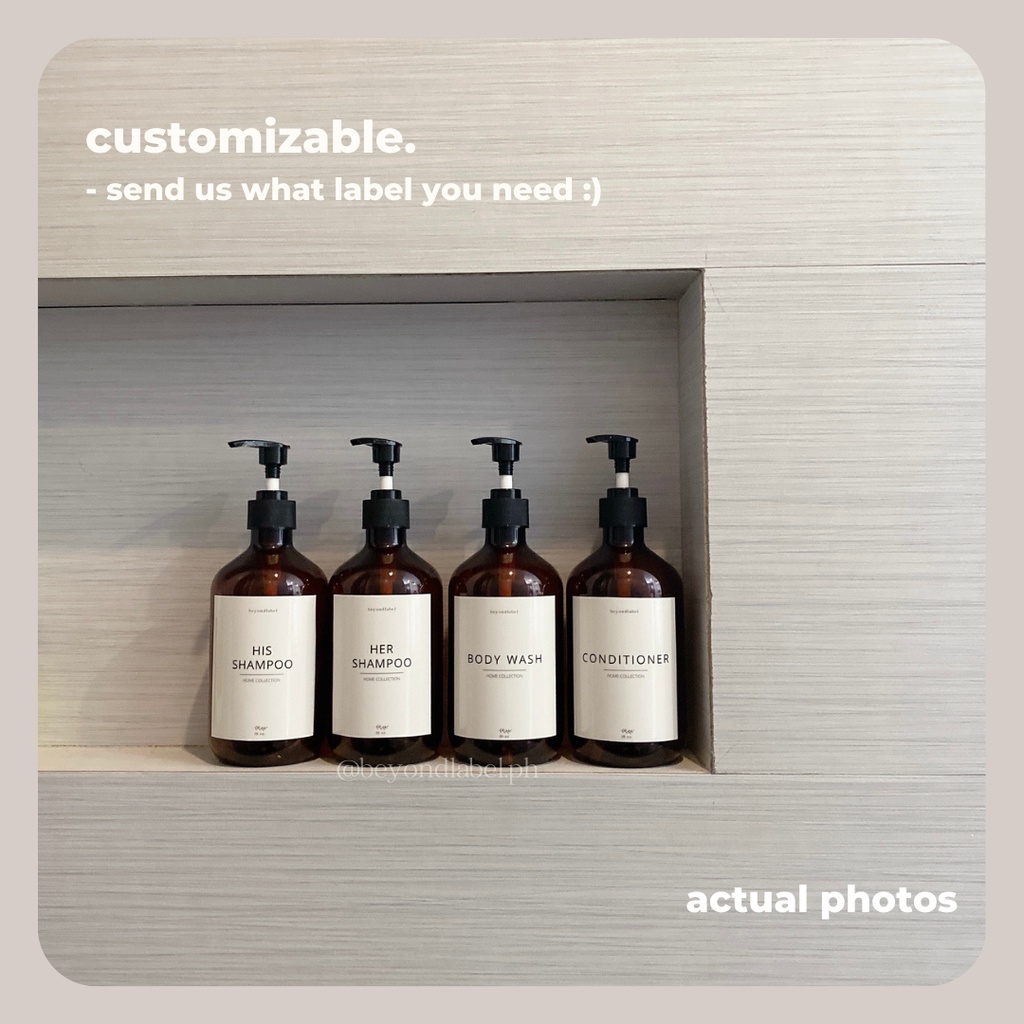 MILAN 300/500ml Soap Dispenser Custom Bottle - Customizable Waterproof Vinyl Labels Amber (plastic)