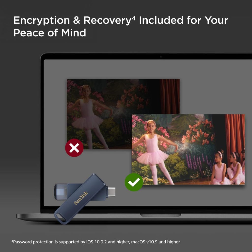 SanDisk Phone Drive for Iphone 128GB OTG Flash Drive Lightning USB 3.2 Type C Gen 1 SDIXD0N-128G
