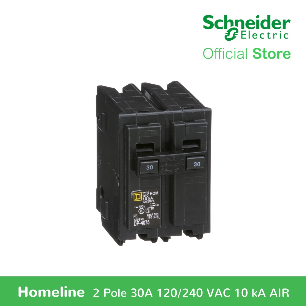 Schneider HomeLine 2-Pole 30A 120/240V 10kAIC Miniature Circuit Breaker (HOM230)