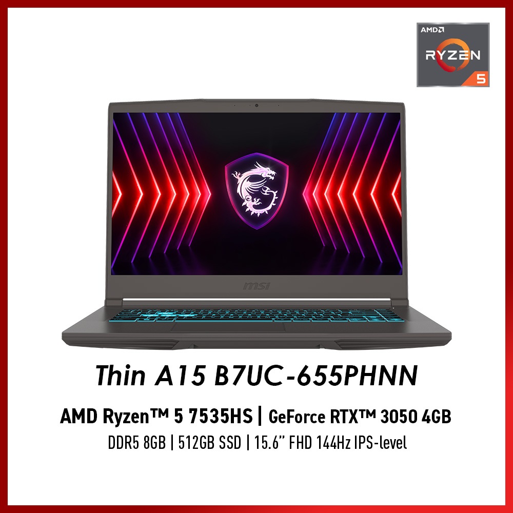MSI Thin A15 B7UC-655PHNN 15.6 FHD | Ryzen 5 7535HS| 8GB RAM | RTX 3050 | 512 GB SSD/144Hz)