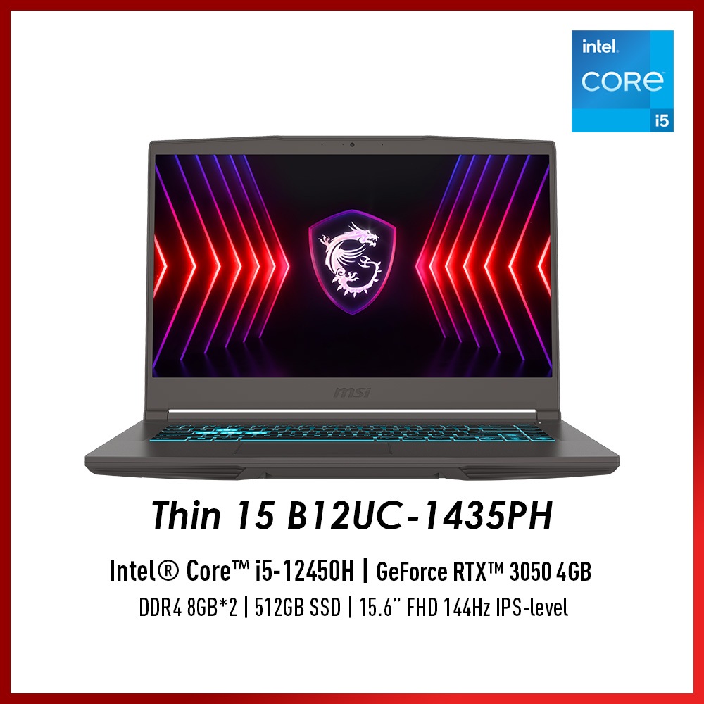 MSI Thin 15 B12UC-1435PH Gaming Laptop (i5-12450H / RTX3050 / 16GB / 512GB SSD / 15.6 FHD 144Hz)