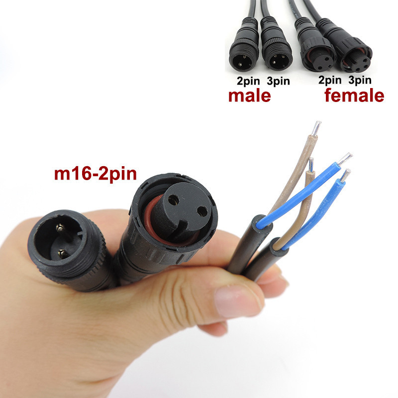 1pcs 2 Pin 3pin core wire DC Male Female power supply connector Jack nut IP65 Cable M12 M16 outdoor Waterproof Plug for CCTV
