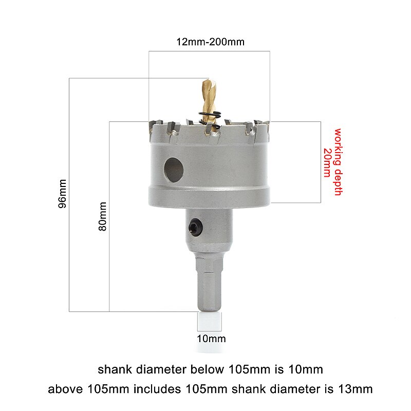 TCT Hole Saw, 12-56mm Carbide Bit with Pilot Drill, Cutter for Hard Metal, Stainless Steel, Mild Steel, Aluminium Alloy, Copper, Iron, Plastic and Fiberglass