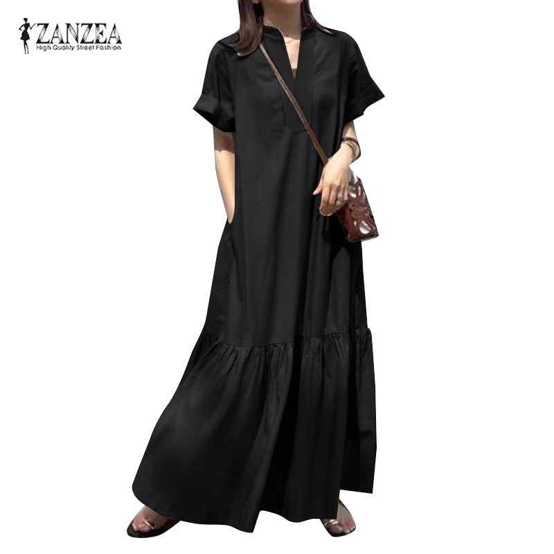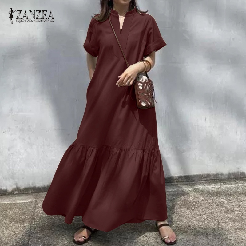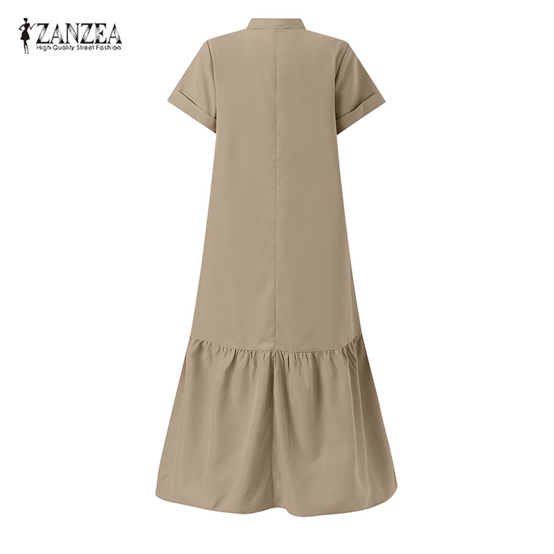 ZANZEA Women Korean Fashion Casual Lotus Leaf Hem Solid Color Dress