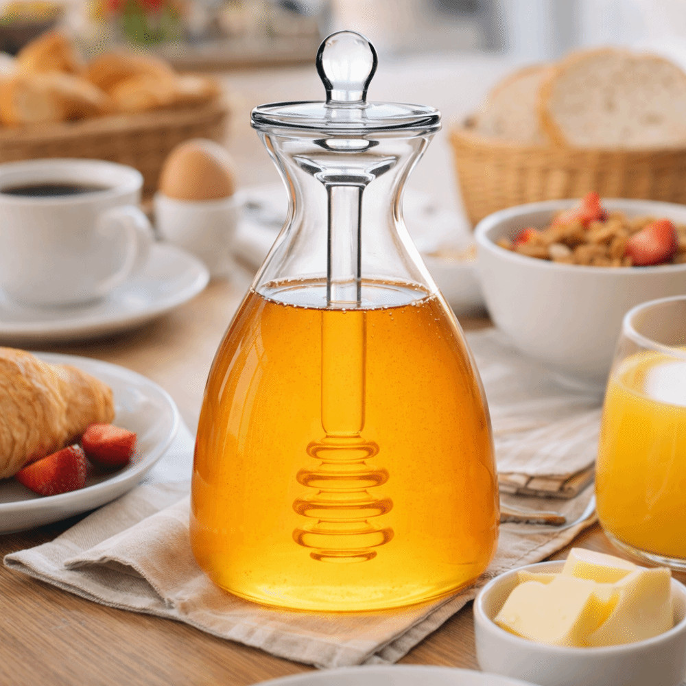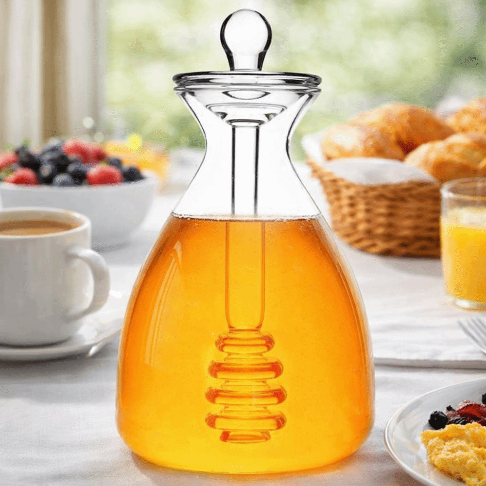 MXFASHIONE Glass Honey Jar, Three-dimensional Bee Large Capacity Honey Pot, Creative Clear With Dipper Rod Honey Container Dining Table