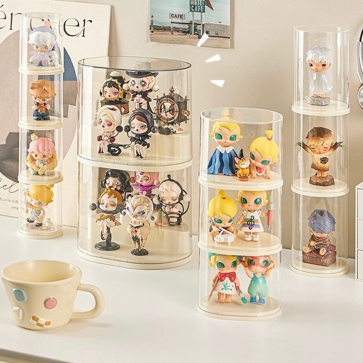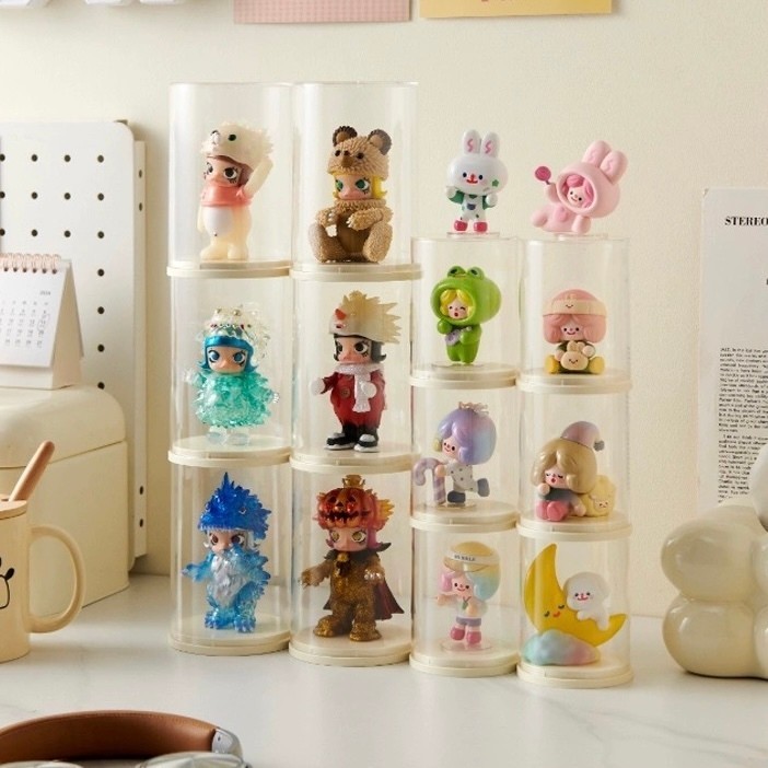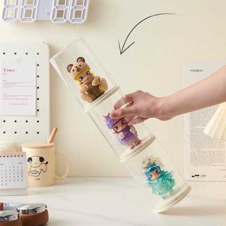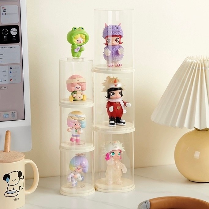 KITkitchen Acrylic Display Case Popmart Storage Organizer Transparent Boxes Round Storage Box