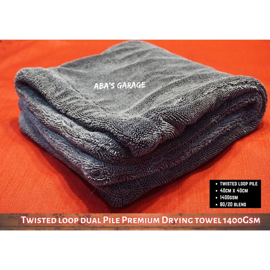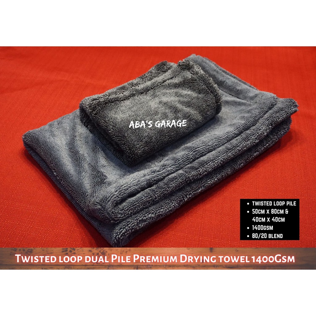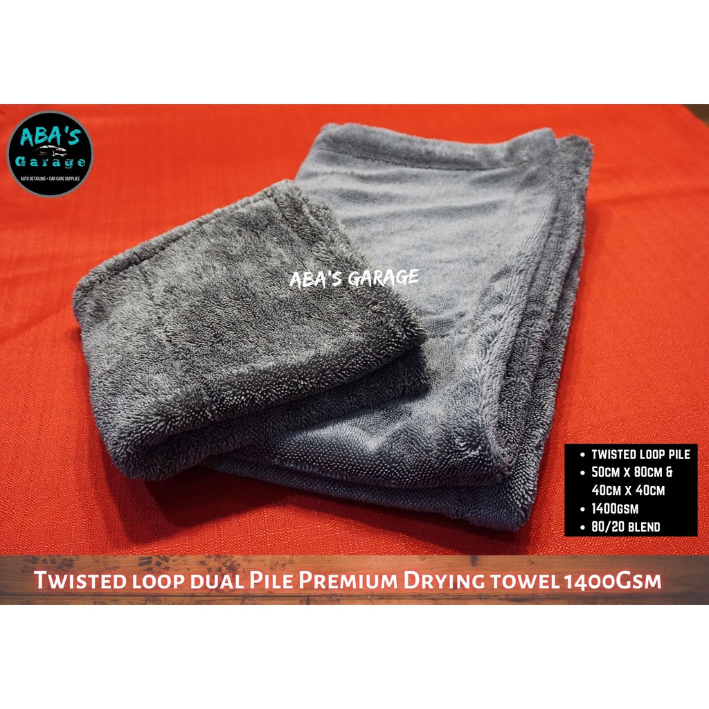 Extra Large 1400GSM Premium Microfiber Drying Towel Twisted Loop Dual Pile in Gray and Blue color