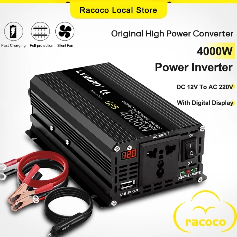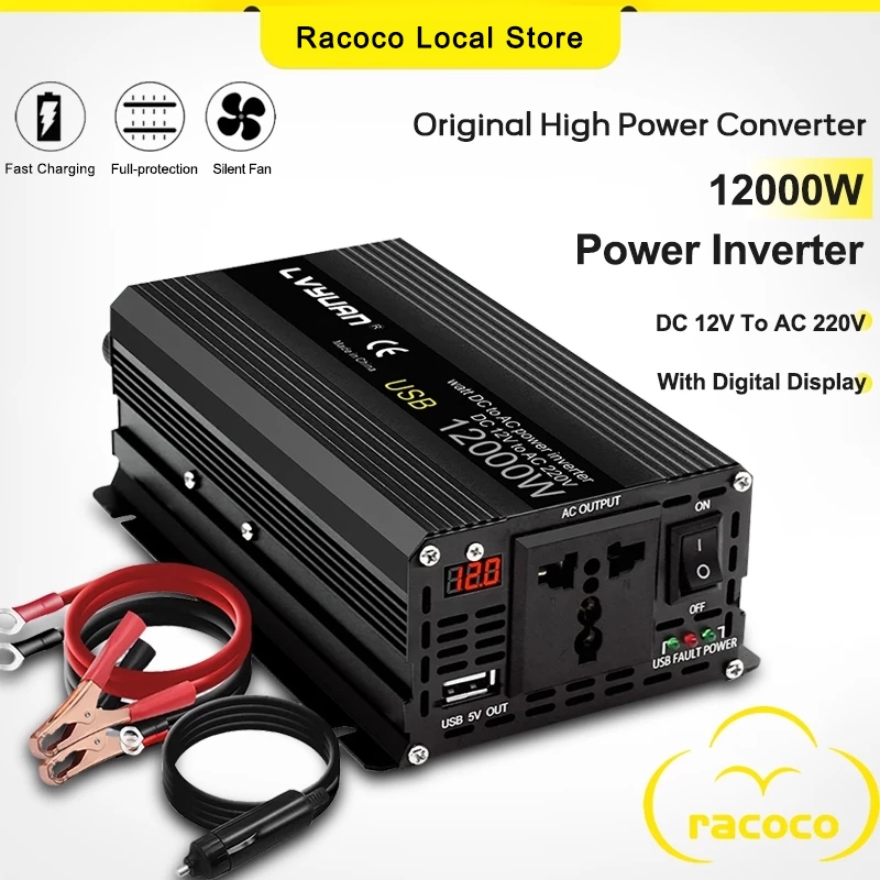 12000W Car Power Inverter Solar Converter DC 12V to AC 220V Car Power Charger With Digital Display