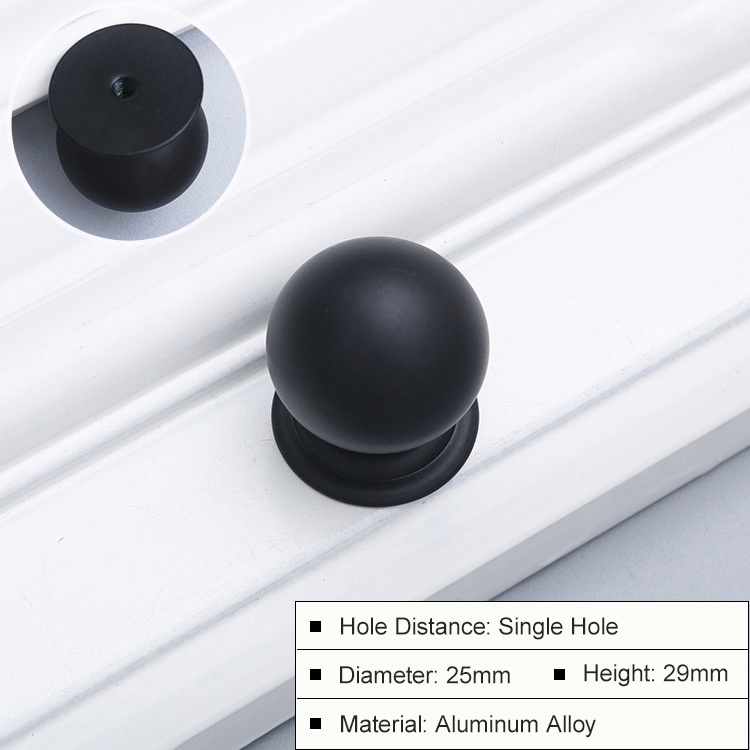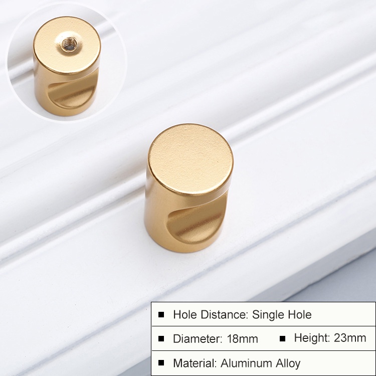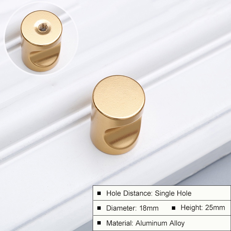 【Wholesale】Simple Aluminum Alloy Single Hole Gold Handle Black round Cupboard Drawer Solid Copper Brushed Handles