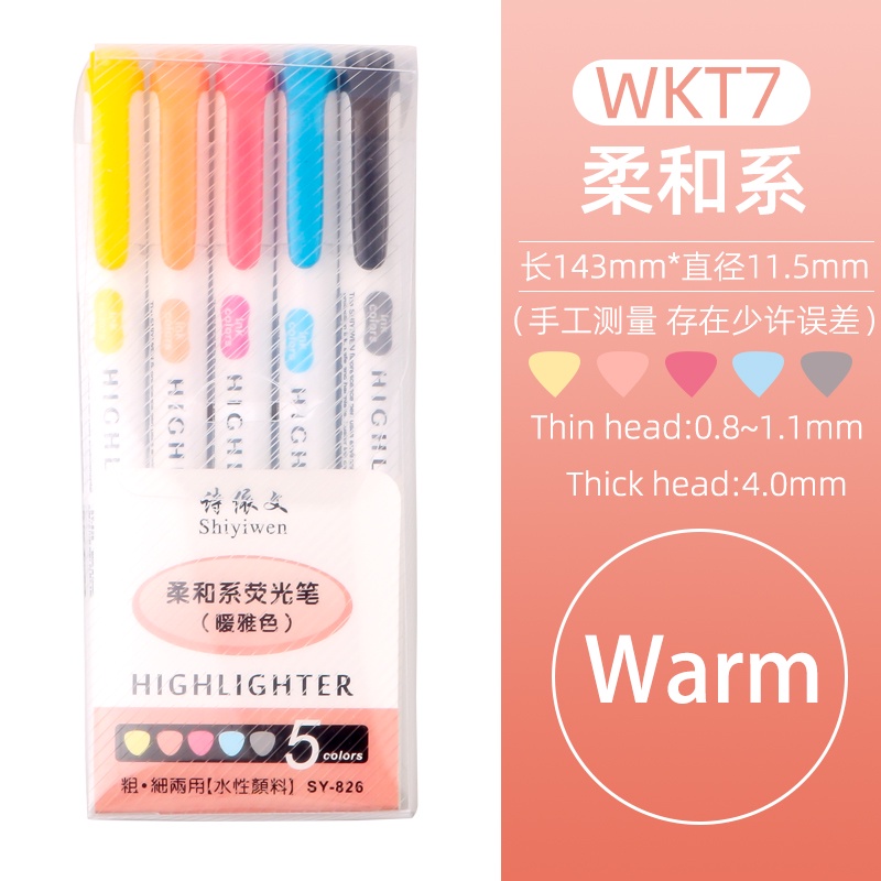 Xileyw [Ready Stock] 5PCS Mildliner Highlighter Drawing Double Headed Fluorescent Marker Pens for Drawing Design
