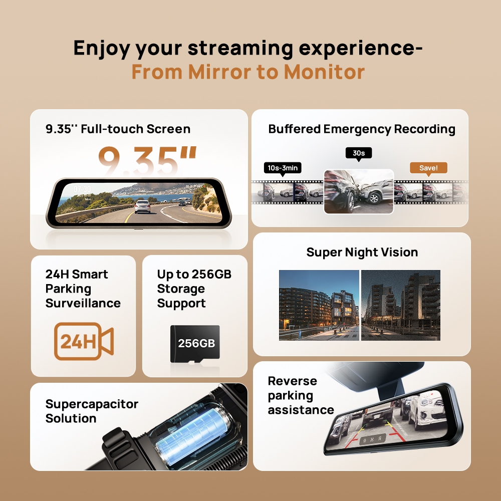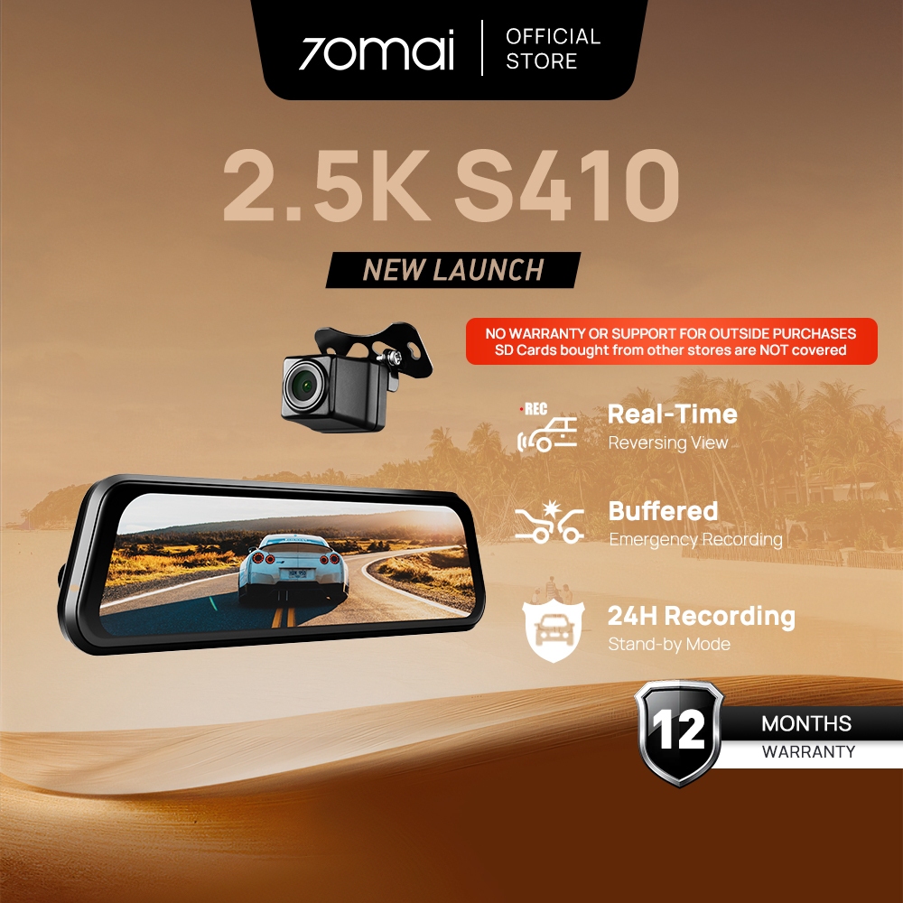 [2026 New] 70mai S410 Mirror Dash Cam Set | Front and Rear | Touch Screen | Reverse Assistance | 2.5